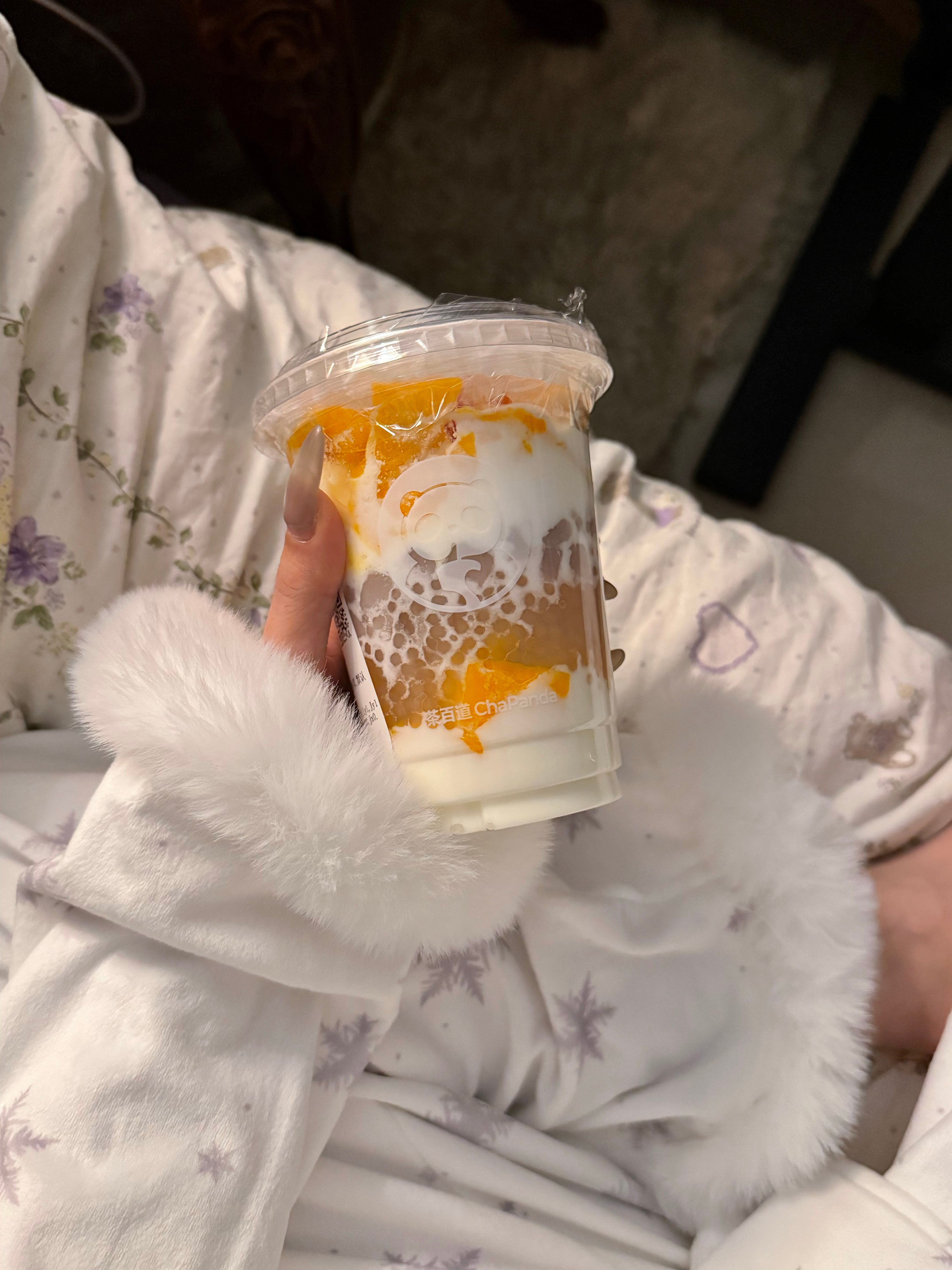 又回家找奶皮了茶百道的固体杨枝甘露撑死我了
