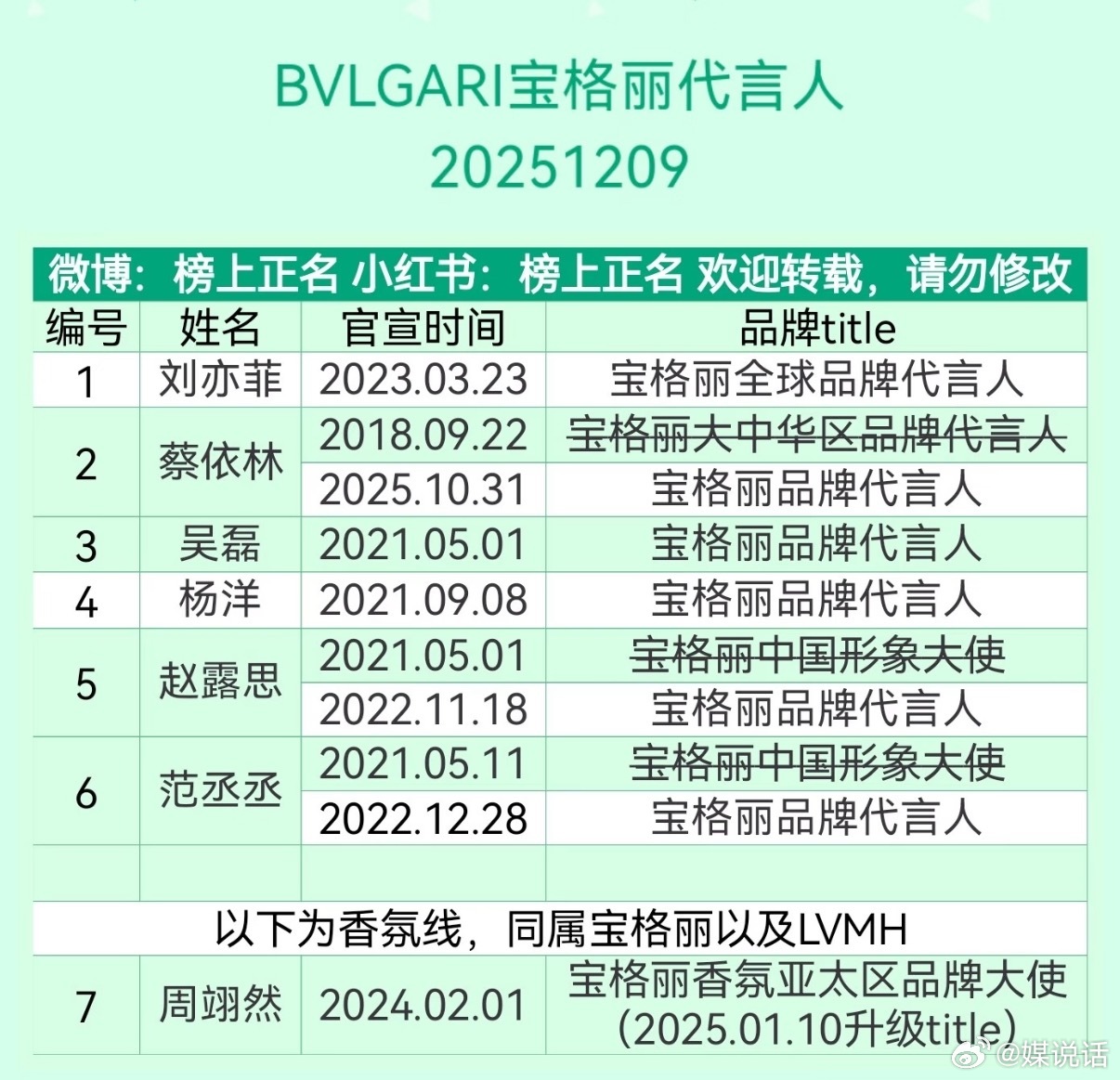 张凌赫官宣宝格丽 宝格丽目前代言人汇总⭐刘亦菲 全球品牌代言人⭐蔡依林、吴磊、杨洋、赵露思、范丞丞品牌代言人⭐周翊然 香氛亚太区品牌大使⭐张凌赫 品牌大使