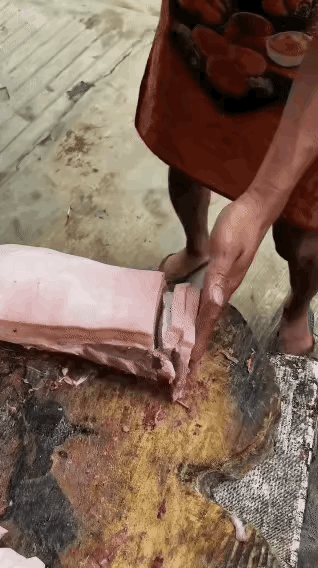别人切肉靠刀工,这位切肉靠“指点江山”