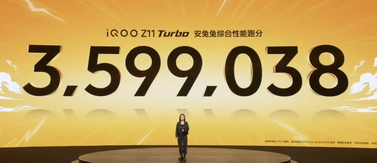iQOO Z11 Turbo搭载骁龙8 Gen 5处理器,自研电竞芯片 Q2,Monster 超核引擎,LPDDR5X UItra+ UFS 4.1,跑分超359万。