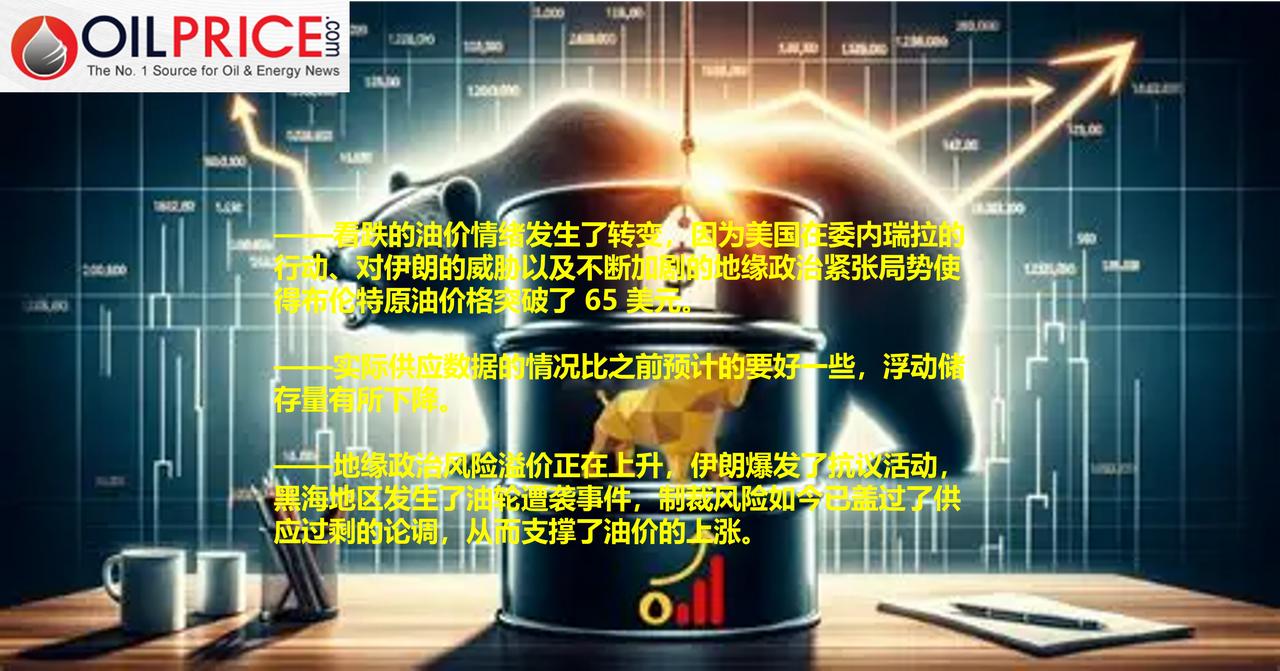 为何看空油价的押注突然显得脆弱不堪? 今年年初时,石油市场的形势可谓极度悲观。大多数预测都表明会出现供应过剩的情况,而且规模相当大。随后,美国对委内瑞拉采取了行动,将该国的总统马杜罗送到了美国接受审判,并威胁称接下来伊朗、墨西哥和哥伦比亚也将受到同样的对待。伊朗爆发了抗议活动。沙特阿拉伯和阿联酋在也门问题上采取了不同的立场。布伦特原油的价格已经超过了每桶 65 美元。 地缘政治因素一直是石油市场的不稳定因素。由于一些大型产油国长期存在政治不稳定的情况,其石油供应有可能出现中断。这种情况最常发生在利比亚,但正如今年我们所看到的,中东的石油大国也并非完全不受供应中断风险的影响,即便这种风险目前仍只是理论上的可能性。如今,如果实际市场数据表明不存在供应过剩,那么油价可能会大幅上涨。 Vortexa公司本周报告称,那些已停泊至少七天的油轮上的原油(这意味着这些原油处于储存状态,而非从卖方运往买方的运输途中)在截至 1 月 9 日的一周内减少了 1.209 亿桶,这一数据由Barchart公司公布。这个数字与其他媒体通常引用的数字大不相同,后者指的是所有油轮上的原油总量(不论用途如何),去年年底这一总量约为 13 亿桶。该数字曾被列为自 2020 年疫情封锁以来的最高值,这意味着当前的需求正在像当时一样遭到破坏。 然而,需求下降的原因各不相同,并非全部是自然形成的。例如,彭博社本周报道称,截至 1 月 11 日的四周内,俄罗斯石油出口量每日减少了约 45 万桶。这并非是由于需求自然下降所致,因为印度和中国正在以更快的速度实现电气化。这是由于 11 月底生效的美国制裁措施所致,此外还有威胁称,除非炼油厂停止购买俄罗斯石油,否则将对印度进口产品加征更多关税。 然而,这个故事还有个转折之处,那就是据彭博社报道,在过去四周(从 12 月 25 日至 1 月 11 日)内日产油量减少了 45 万桶,但在这段时间(从圣诞节到 1 月 4 日)的减产幅度仅为 3 万桶。此外,俄罗斯在截至 1 月 11 日的四周内每日的石油总出口量为 342 万桶,实际上高于 2025 年的平均水平。换句话说,需求状况相当良好,尤其是对于折扣原油而言。 说到折扣原油,中国似乎已失去了大量获取委内瑞拉折扣原油的渠道,不过这可能是暂时的状况。这一情况使中国去年积极储备原油的行为有了新的解读,暗示中国或许能够选择观望,看看这个南美国家的局势会如何发展。据特朗普总统所说,该国的石油产业将由美国长期管理。目前,所有人都在关注伊朗及其抗议活动,而欧盟和特朗普总统都对这些抗议活动表示支持。油价的调整已经开始。 花旗银行的分析师本周表示(据路透社报道),伊朗的抗议活动可能会导致全球石油供应出现短期短缺,从而加剧全球石油供应紧张的局面,但主要原因是地缘政治风险溢价的上升。就在两天前,高盛公司再次下调了今年的油价预测,理由是供应过剩。然而,该投资银行指出,抗议活动尚未蔓延至伊朗的主要石油产区,并补充说:“目前的风险主要集中在政治和物流方面的摩擦上,而非直接的供应中断,因此对伊朗原油供应和出口流量的影响是可控的。” 不过,在本周早些时候,澳新银行的分析师在一份报告中写道,抗议者呼吁伊朗的石油行业工人也参与此次抗议活动。该银行表示:“这一情况使得每天至少 190 万桶的石油出口面临中断的风险。” 盛宝银行的商品策略主管奥勒·汉森本周早些时候曾表示,石油交易商对石油市场极度悲观,并警告称“如果技术面或基本面的前景有所改善,那么市场就容易出现反弹。”汉森引用了高盛的一项调查结果,该调查表明机构投资者对石油的兴趣正在减弱,这进一步证明了市场上的普遍悲观情绪,但他也指出,在短期内,地缘政治事件可能会推高油价。 来自地缘政治领域的另一则利好消息是,据路透社援引未具名消息来源的报道,黑海两艘油轮遭无人机袭击。这两艘油轮正驶往里海管道联盟的一个装货点,该联盟去年成为乌克兰无人机袭击的目标。至于此次袭击的肇事者,目前尚无相关评论,路透社称乌克兰政府拒绝发表评论,运营该联盟的公司也是如此。然而,此次袭击的事实再次凸显了此前被忽视的地缘政治风险,而这些风险直到最近才被重新提上议程,当时人们更多关注的是过剩供应的预测。