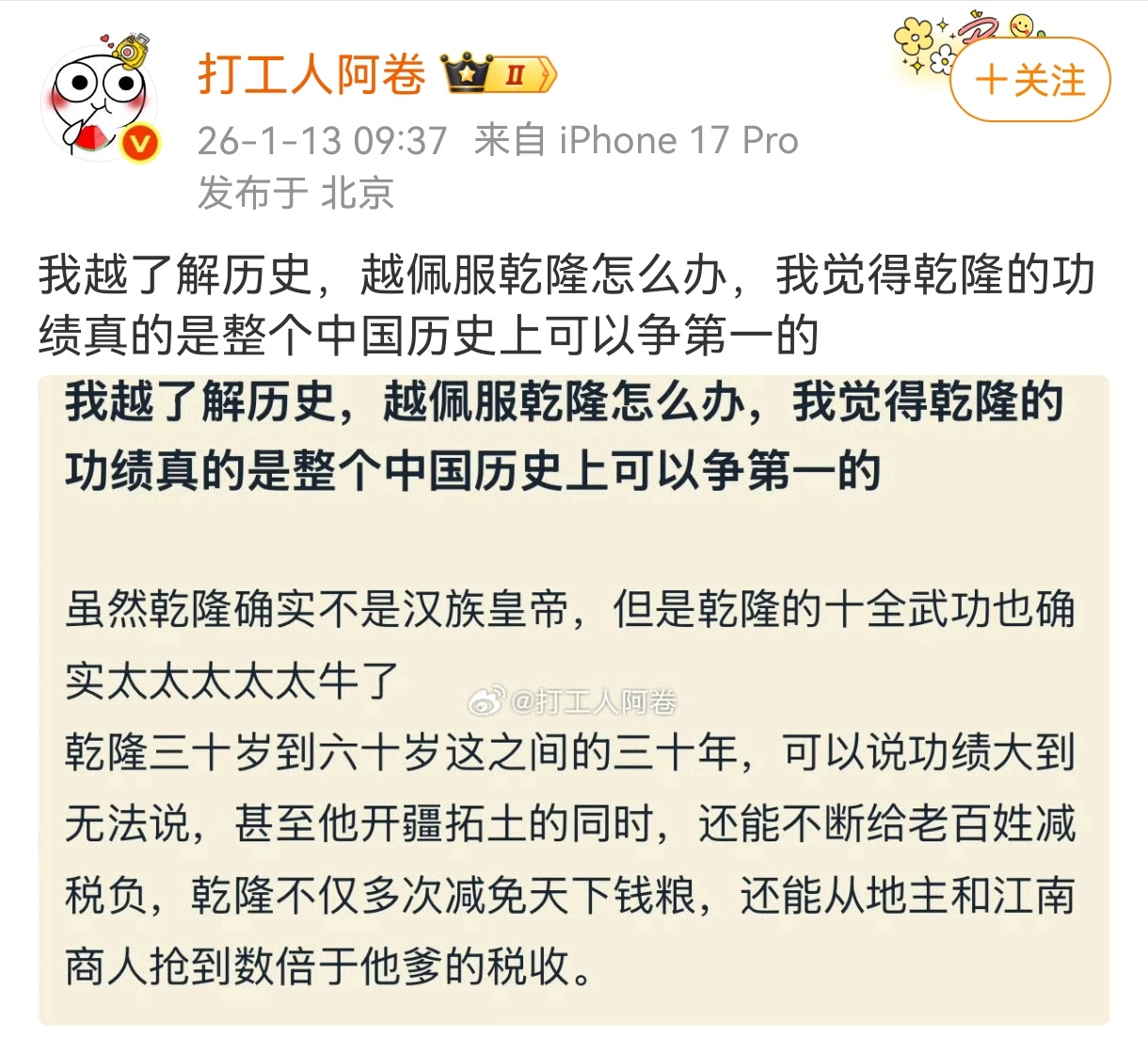 乾隆历史功绩第一?