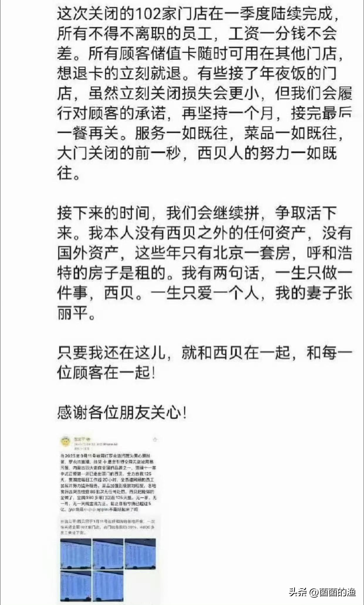 看新闻,贾国龙朋友圈说,西贝要关102家店,说实话,我一点不意外。这牌子短短几年,真是把消费者的好感作没了! 回看它这波操作,简直成了反面教材合集:2020年大伙儿都难,它第一个跳出来哭穷卖惨;转头又喊房东降租;创始人还鼓吹“715”比996更狠,员工是人不是机器啊!一个馒头敢卖21块,副总裁更飘了,说啥“月薪五千不配吃”?这高高在上的劲儿,让人心凉。 用预制菜死不认账还怼顾客,转基因油用得倒挺欢...桩桩件件,哪一件尊重消费者了?挣钱没错,但把顾客当韭菜还理所当然,这就是根子上歪了。 做买卖,良心和敬畏心不能丢。西贝这五年,光顾着出风头、赚快钱,把衣食父母得罪个遍,口碑崩了,店关了,怪谁呢?纯纯自己作的!