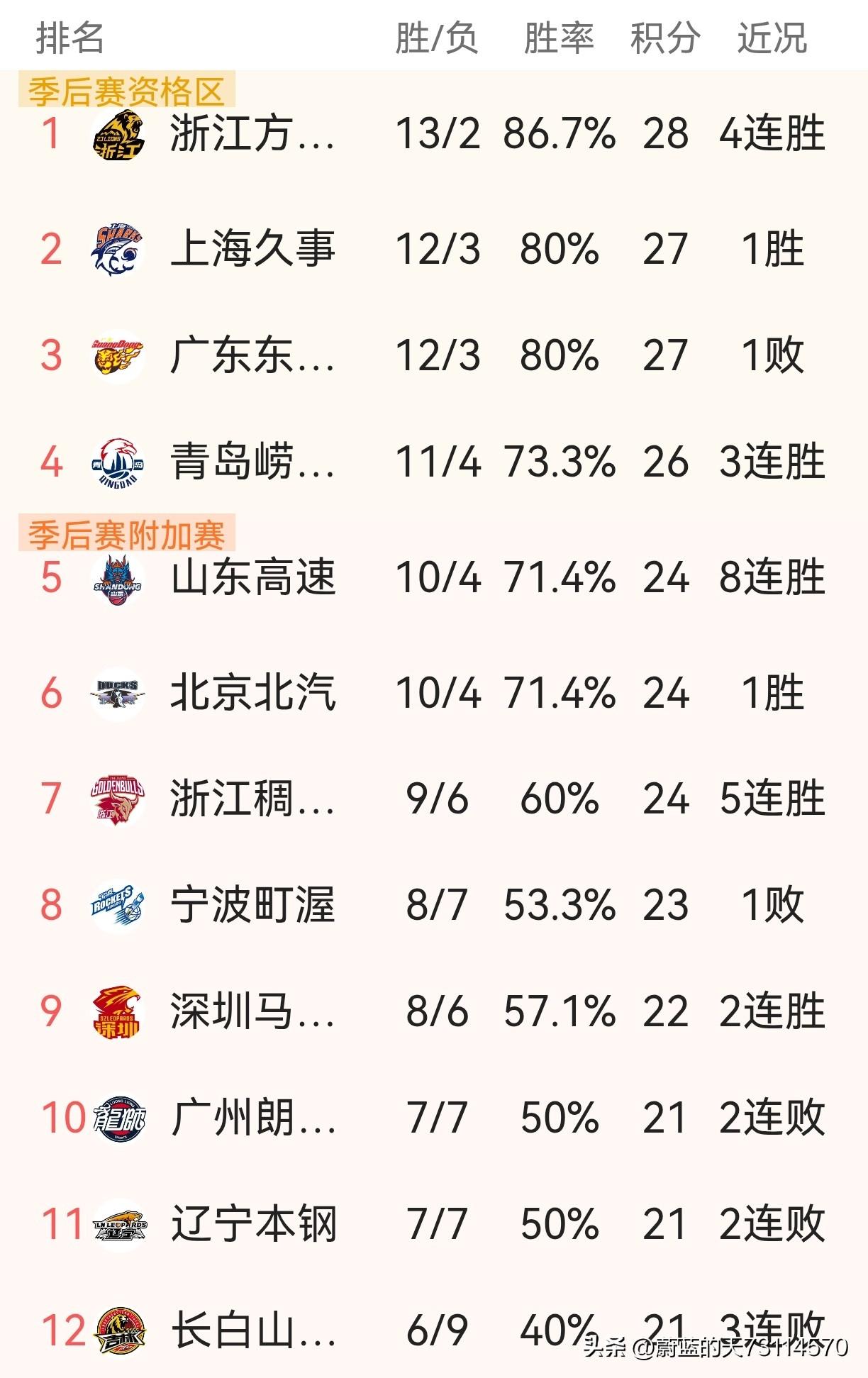 止CBA常规赛15轮: 浙江三支球队:浙江方兴渡、浙江稠州金租、宁波町渥分别排名第一,第七和第八位。 广东三支球队广东东阳光、深圳马可波罗(少赛一场)、广州朗肽海本(少赛一场),分别排名第三,第九和第十位。 山东两支球队青岛崂山啤酒、山东高速(少赛一场),分别排名第四和第五位。 北京两支球队北京北汽(少赛一场)和北京控股分别排在第五,第十三。 那么问题来了,这十支球队能否全部打入季后赛,依笔者看是八九不离十吧!