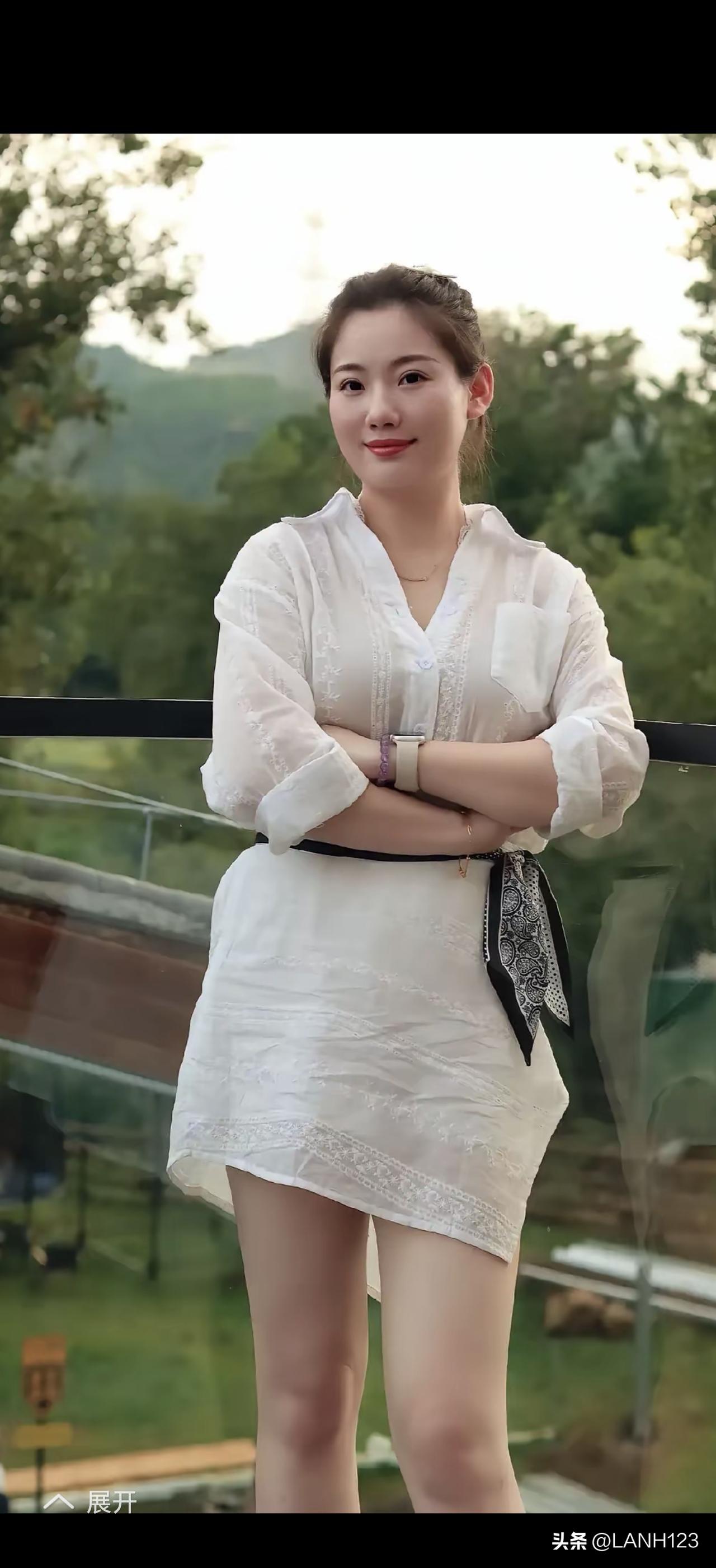 绿树掩映下,佳人倚栏立。气质女神烟火气享受生活[比心]