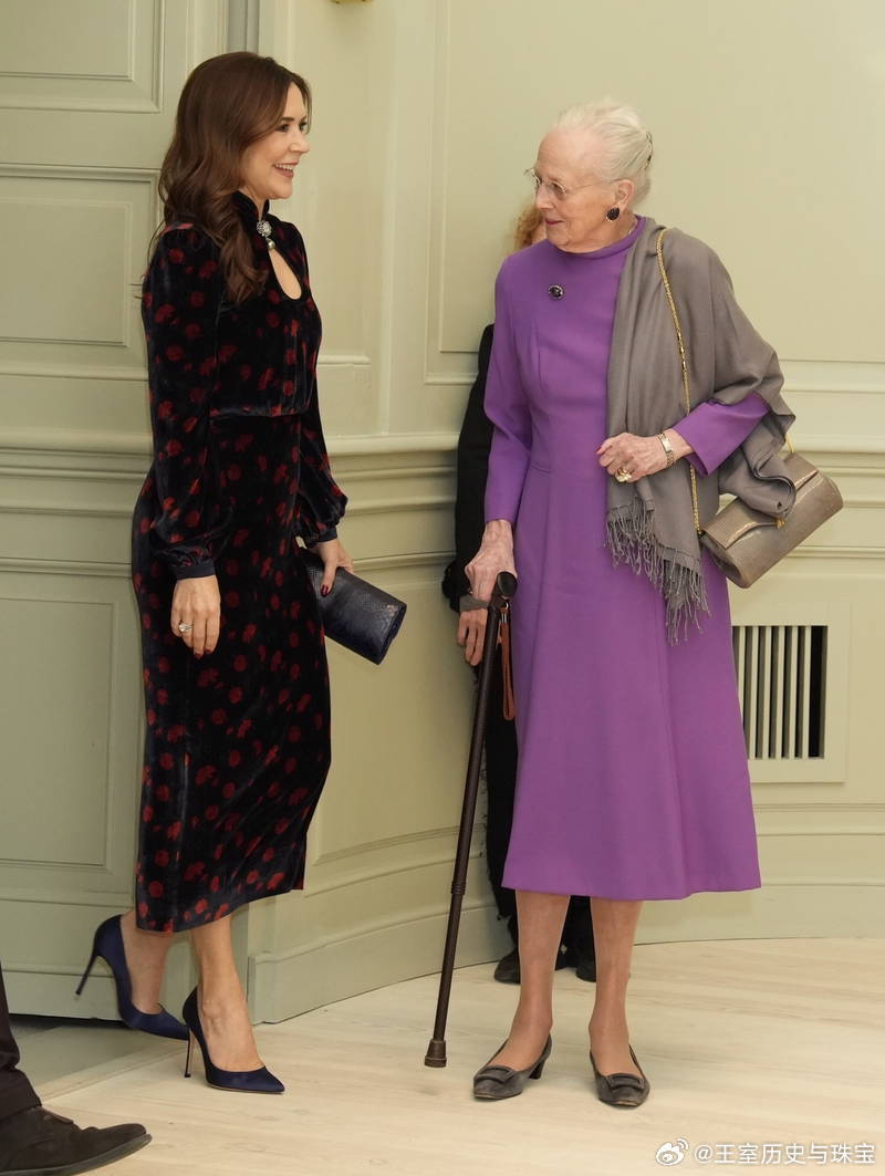 新闻 2026.1.15 丹麦王后玛丽和女王玛格丽特二世出席皇家宫廷剧院重开典礼(历经5年大修现重新投入使用),玛女王身体好转后恢复参加活动,大玛丽的新连衣裙来自Saloni,常春藤胸针新增黑珍珠版本。