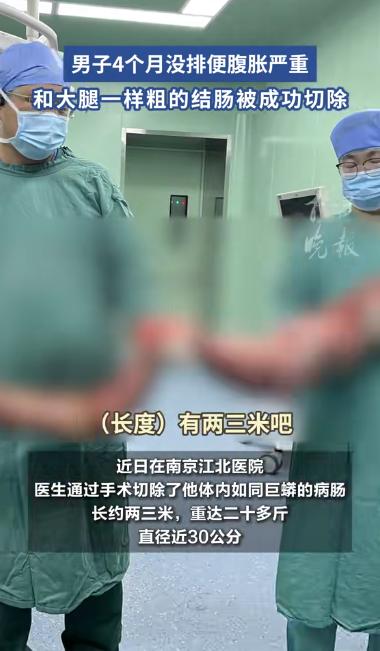 不敢相信!南京一40岁男子,4个月没有排排便,实在扛不住了才去看医生,结果,医生切出一条2米多的结肠,这条结肠跟大腿这么粗,足足重20多斤,里面全是粪便! 南京的郑先生(化名)40岁,平日里为人沉默寡言,做事谨慎,他从小便有排便困难的问题,虽然父母在他年幼时便带他看过医生,但因各种原因,始终未能得到根治。 长大后,郑先生开始依赖药物来帮助自己排便,常常吃些泻药或者其他药物来维持正常的排便,但这种方式并未给他带来实质性的改善,反而因为长期依赖药物,身体逐渐失去了正常的排便能力。 多年来,郑先生的健康状况时好时坏,排便的问题时常困扰着他,但他总是选择忍耐,并未在意过多,前一段时间这样的情况维持了四个月左右,在这期间郑先生的肚子越来越胀,腹痛不断,甚至连日常饮食也开始受到影响,胃口全无,每次进食后都觉得十分不适。 他开始明显感到体力下降,精神萎靡,连晚上的睡眠都变得格外难以入眠,肚子时常鼓胀,感觉像是有东西在里面堵塞。 他的生活几乎被这种痛苦占据,日常工作和社交也受到了很大的影响,尽管如此,郑先生依然没有立即去医院求诊,他总是认为自己能忍过这一段时间,不需要依赖医院治疗。 终于,郑先生忍不住,决定去医院看看,医生经过详细的检查后,决定进行腹部CT扫描,结果显示,郑先生的结肠被严重堵塞,已经堆积了大量的粪便,医生判断,郑先生的结肠已经因为长期的便秘和药物依赖,形成了一个巨大的“粪便库”,导致他排便困难。 在经过一番讨论后,医生建议进行手术治疗,手术过程中,医生切除了郑先生的一段结肠,长达2米多,几乎是正常结肠长度的两倍,更令人震惊的是,这段结肠重达二十多斤,且内部充满了已经硬化的粪便,堆积的粪便数量之大让所有医护人员都感到震惊。 手术完成后,郑先生的状况有所好转,他的腹部肿胀逐渐消失,食欲恢复了不少,晚上也能够睡得安稳了,医生告诉他,结肠如此严重的堵塞,实际上是由于他长期忽视身体信号,依赖药物来处理便秘问题,导致肠道功能失调,最终形成了这种极端的状况。 郑先生的病例引起了广泛的关注,网友们纷纷评论留言,感到既惊讶又深感遗憾,有网友表示,郑先生这种情况实在是警示了我们每一个人,千万不要忽视身体的警告,长期依赖药物不仅无助于健康,反而会带来更严重的后果,还有人表示,对于一些慢性疾病,定期检查和科学的治疗才是最正确的选择,而非一味依赖短期的药物治疗。 这个事件告诉我们,健康不仅仅是一个抽象的概念,而是需要通过每一天的细心呵护和科学的管理来维护,忽视身体的信号,尤其是在排便等看似微小的健康问题上,可能会让我们付出难以承受的代价。 信息来源:扬子晚报