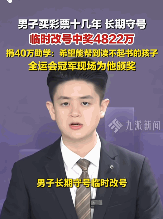 “这就是命啊!”1月7日,广西桂林,一男子买了十几年彩票,都有守号的习惯,当天购买彩票时,他突然临时改号,没想到竟中了4822万!直接刷新当地最高奖金记录!令人暖心的是,男子当时就捐出40万用于贫困助学。网友:看得手痒!   男子买彩票一直都很有分寸,从不乱花钱,这个习惯一坚持就是十几年,在他看来,买彩就是平时解解闷、顺便帮衬点公益的小事儿,尤其爱玩儿超级大乐透。   之前这么多年,他一直守着一组号码买,每次都是单注追加,也就花十几块钱,从来没因为买彩耽误过正常生活、影响家里开支。   而这次能中大奖,关键就在于开奖那天的一时兴起——他没按往常的老号码买,随手换了一组新的,就这么个没任何打算的决定,居然就撞上了大运。   4822万不是一笔单一奖项,里面有2679万多的基础奖金,还有2143万多的追加奖金。   追加投注是超级大乐透独有的玩法,也正因为选了这个,他才能拿这么高的奖金。   1月7号那天,男子确认自己中了奖,就去当地体彩兑奖大厅办了手续,第十五届全运会自由式摔跤冠军邹万豪也被邀请到了现场,一起见证了这个幸运时刻,也让这事儿多了点不一样的意义。   刚确认自己中了奖,他没被这么多钱冲昏头,很快就做了个决定——捐出40万,专门用来资助广西本地的贫困学生,想借着这笔钱,给那些寒门孩子多铺一条求学的路,让自己这份突如其来的好运,也能暖到更多人。   男子主动捐款,既呼应了体彩的公益初衷——毕竟每张彩票卖出去,都有一部分钱划入公益金,用来做各种公益项目,也是他本身善良的自然流露,正应了老辈人说的积善累德的道理,更能看出他对这笔意外之财看得很透,没被钱搅乱了自己的生活节奏。   这事儿一传开,网友们都炸开了锅,说法也是五花八门。   有网友直呼“临时改号这波操作也太绝了,运气来了真是挡都挡不住”,还坦言自己看得心都痒了。   也有网友好奇这笔巨款能把日子过成什么样,一个劲儿琢磨这笔钱该怎么花。   彩票本来就是用来娱乐和做公益的,压根不是让人一夜暴富的捷径,男子的经历,既是运气好撞上了好事,也是他长期保持理性生活态度的结果。   4822万的奖金是命运的眷顾,40万的捐款则是人心的温度,这两样放一起,其实就说明一个理儿:真正的幸运,从来不是突然砸到手里的钱,而是能驾驭财富的清醒,还有愿意把温暖传出去的自觉。   希望这份好运能点醒更多人,买彩回归到休闲娱乐的本质,也让这份善意一直传下去。 信息来源:九派新闻
