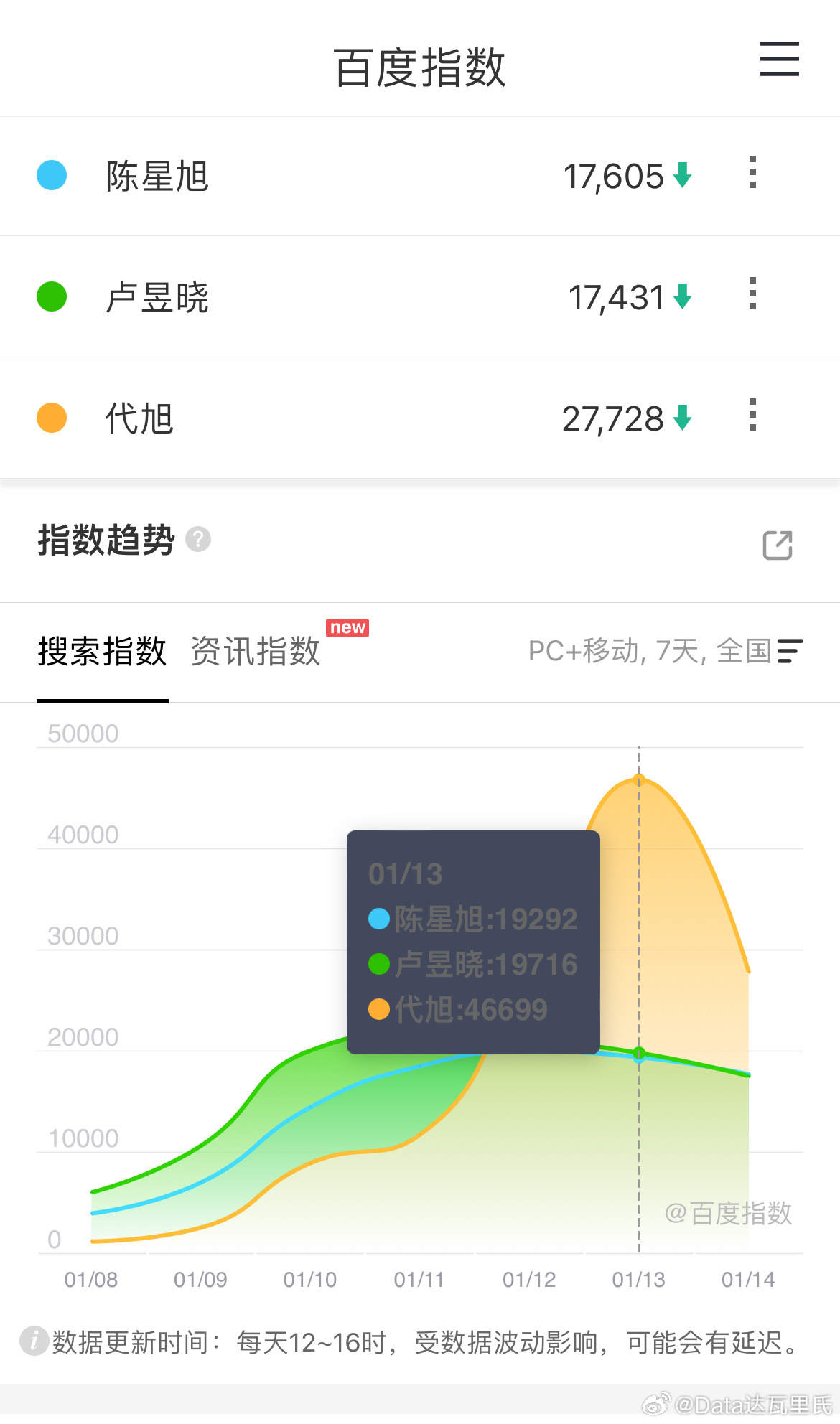 陈星旭、卢昱晓轧戏 云合播放评级已成功升级周四爱奇艺站内热度8364,较前日+58播放量估计加不了多少招商最新单集🥕了,总时长465s百指最高11.4w,昨日9.9w代旭昨日百指最高4.7w,今日回落至2.7w轧戏数据