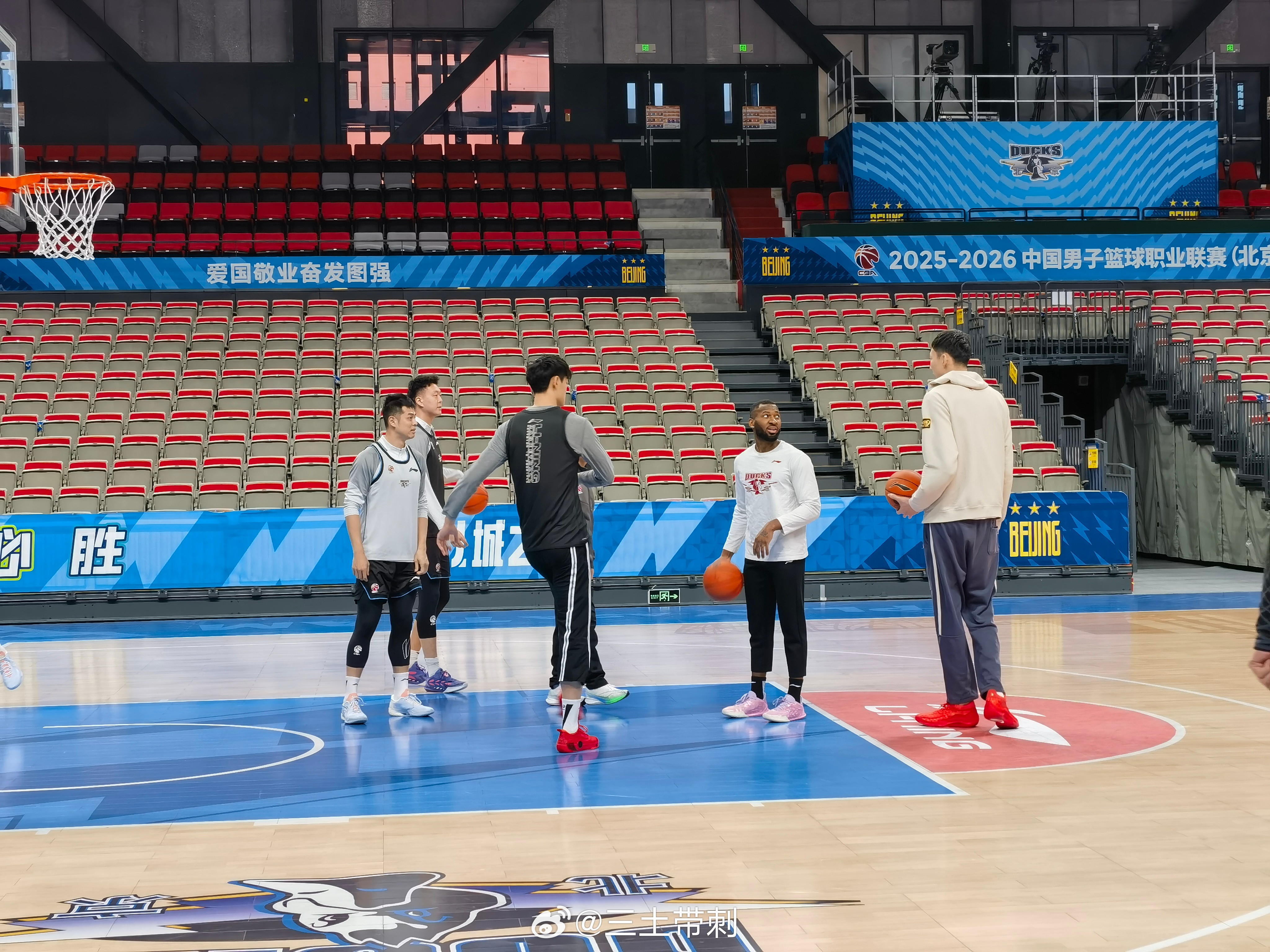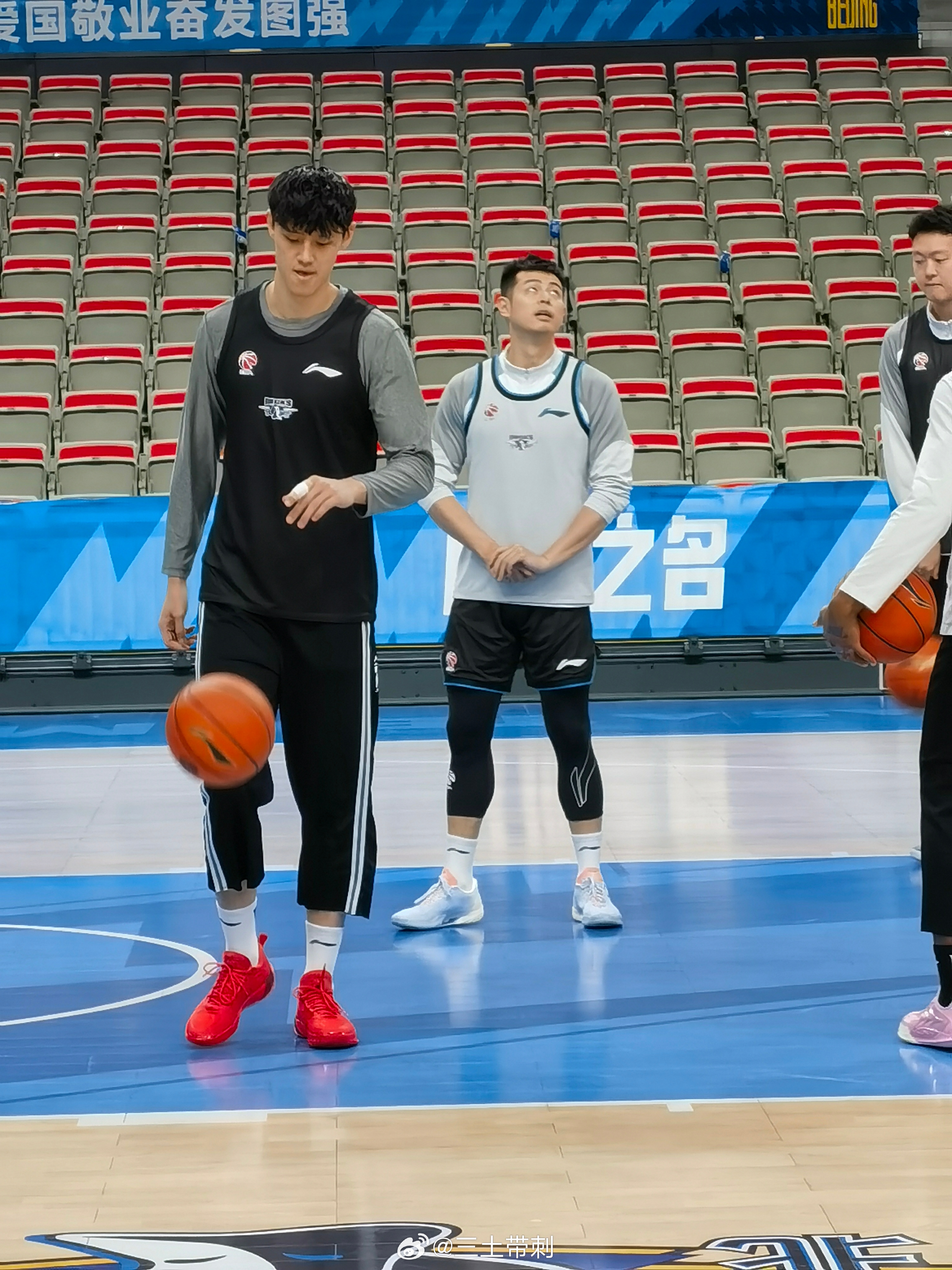 北京男篮vs山西男篮 首钢上午踩场,刚进场一刻,赵睿继续康复,斯佩尔曼和老塔没来,其他都正常到场。爱酱换了韦德12的大红配色,好看!