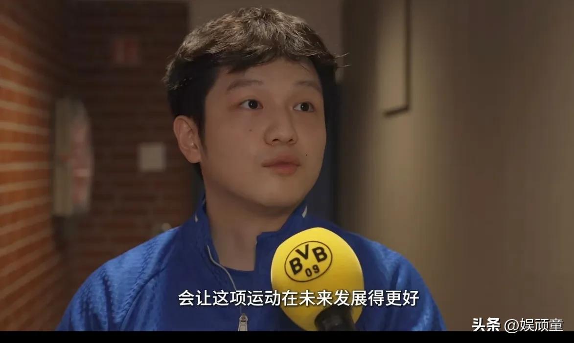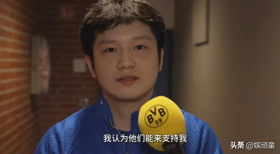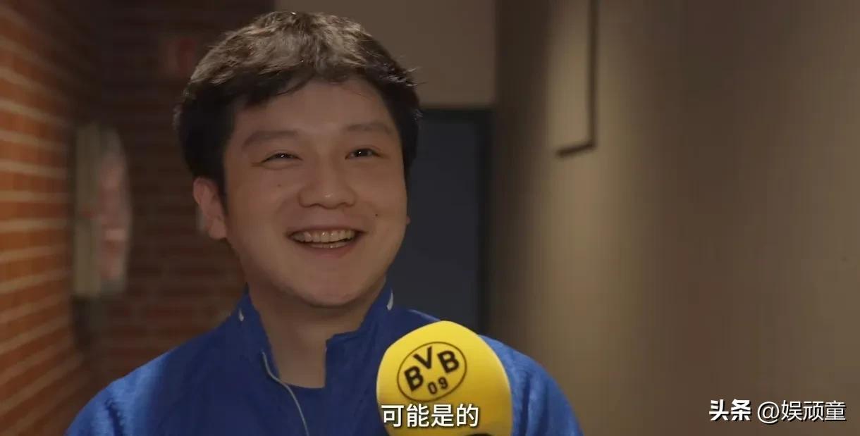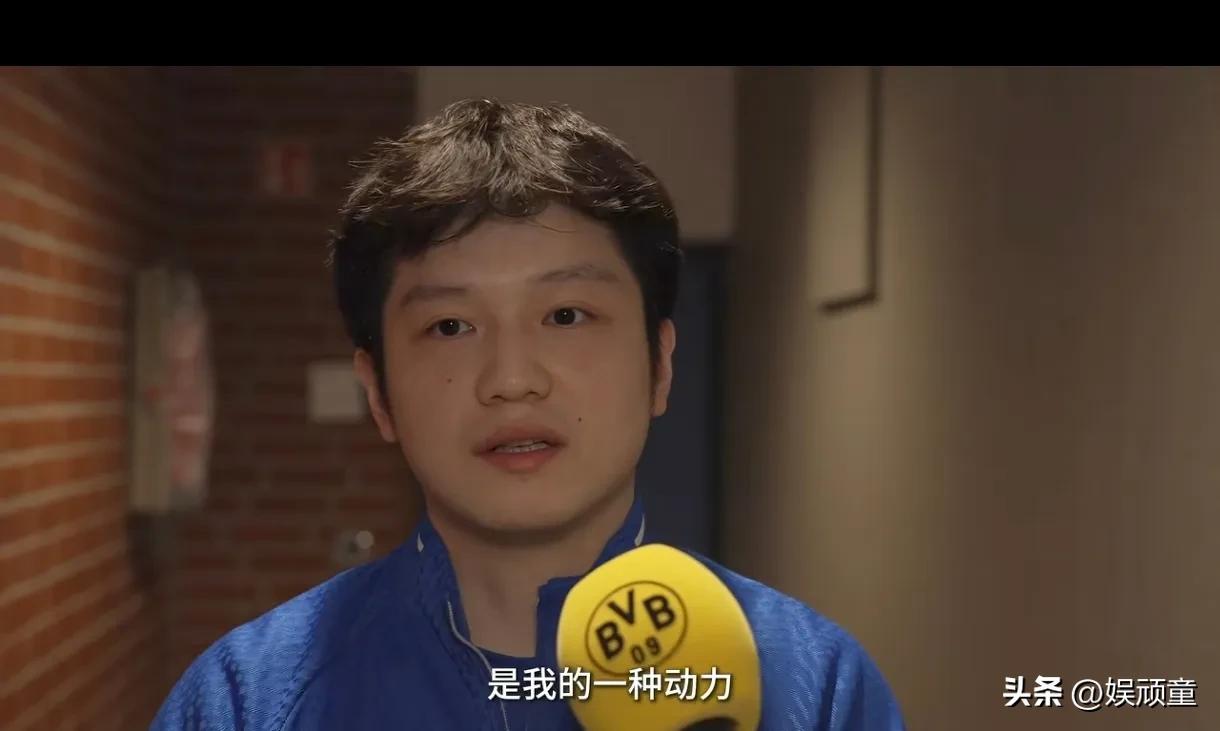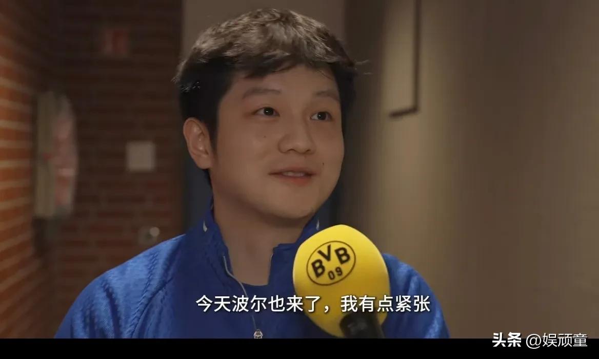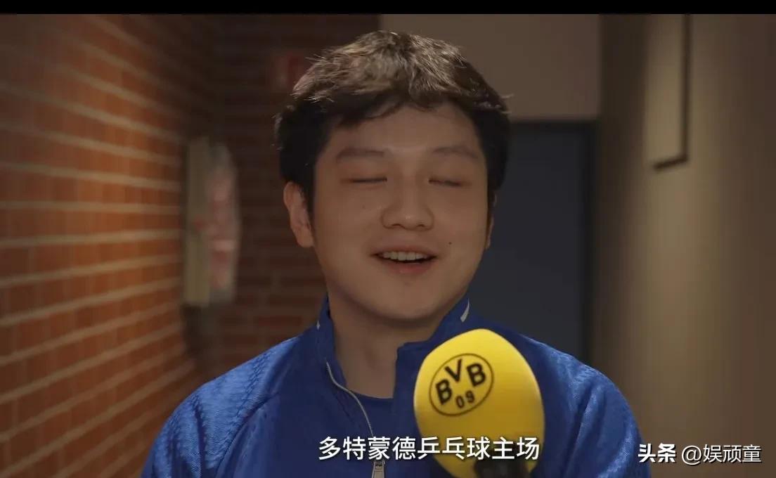 发现樊振东一个特点,有点为难的时候,他就会抿嘴! 这次他在多特蒙德后台接受采访,