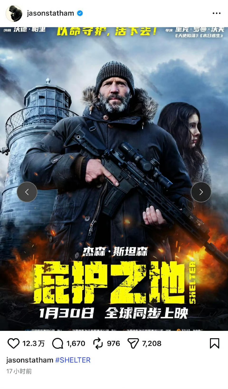 你不宣我不宣杰森郭达自己宣 别人宣新片花式营销,杰森·斯坦森直接刷屏送福利!新片《庇护之地》海报里持枪硬汉造型超带感,脑补出枪战火拼、绝境突围的暴力美学名场面~一年一部开年必备,1月30日全球同步上映,58岁还能硬核开打,动作爽片还得看他!