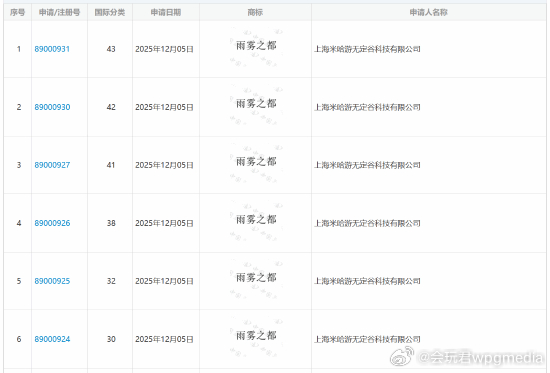 米哈游《雨雾之都》即将来临2026年1月15日,有博主发现,米哈游子公司近日密集申请了20多个“雨雾之都”相关商标。普遍认为,这正是该款基于虚幻引擎5(UE5)开发的重量级IP《Varsapura》的正式中文名称此前,外界曾一度猜测该作会采用直译的“雨之城”,但现在看来,“雨雾之都”显然更具文学意境和辨识度。目前,这批商标正处于实质审查阶段。结合之前已经流出的UE5实机演示画面,可以说米哈游对这款新IP的筹备已经进入了冲刺期,接下来要等的就是版号到位,或许今年有望迎来开启首测。对于米哈游新作定名为《雨雾之都》,你的第一直觉是?你对本作有何期待?评论区聊聊吧。