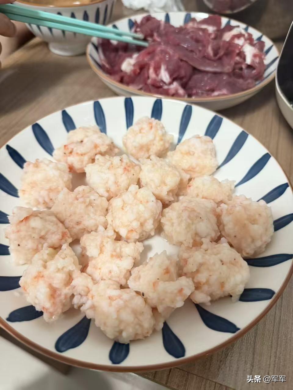 自制虾滑。 寒冷的冬天涮火锅是最美的佳肴了。 涮火锅除了涮肉之外,涮虾滑也很鲜美。 超市里买的虾滑,不知道里面添加了什么,吃着不放心,现在大虾挺便宜的,我一般就自制虾滑。 先把虾剥皮,把虾肉拍碎,然后拌上蛋清,淀粉,搅成糊。 里面还放了一点点料酒和葱姜水,上面的小黑点是黑胡椒,放胡椒粉能好看点[呲牙]! 这样美味的虾滑就做成了,挺简单的吧,比超市里卖的虾滑好吃多了,主要是自己做的吃的放心呢! 涮火锅的时候,我一般把虾滑先全煮出来,用小勺子一个一个的往锅里下,煮出来之后放在盘子里,吃的时候把虾丸往火锅里快速涮一下就行了。 这样吃剩下可以放在冰箱里,下次再吃,也可以做面的时候放上虾丸。 如果跟羊肉什么的放在一起煮,吃不完,味道就混了。 涮锅子的时候涮点自己做的虾滑,真是太美味了! 虾滑创意吃法 虾肉虾滑 虾滑饼