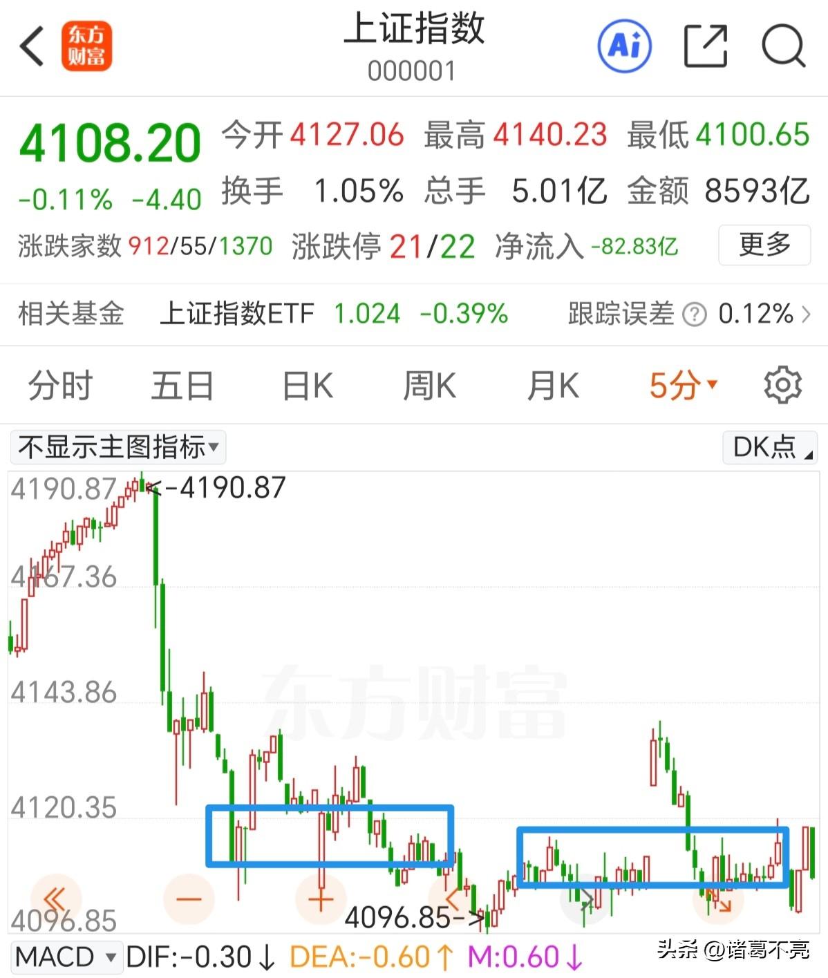 早盘的走势真是戏剧性,高开低走形成了中阴线,接下来到底是机会还是风险? 从细分结构上看,以4190点下来的一段盘整下跌已经走完,如果看成中枢扩展还有一个向下的离开段,个人认为是机会做一买的。主要理由就是上证50距离20日线和下方的高点突破后形成的支撑很近,也就10多个点的空间,不会就这么跌破的,探底回升的可能是最大的。 同时如果以4096点为起点,走一个盘整上涨是还有一段向上的离开段的,现在觉得很纠结,原则上是二买的机会。早盘的冲高是二卖,没有做的,下午如果冲高还可以继续做二卖。 个人倾向于下午向上继续反弹,只要下跌就是无论怎么看都是买点,要不要纠错,就要看你的仓位和手中个股决定。中低位的大胆买阴卖阳! 你的基金和股票赚钱了吗 在股市,牛市最大的风险是什么 作为散户,ETF是好的投资工具吗 从长远看你最看好哪一个ETF基金 A股市场还能有慢牛行情吗