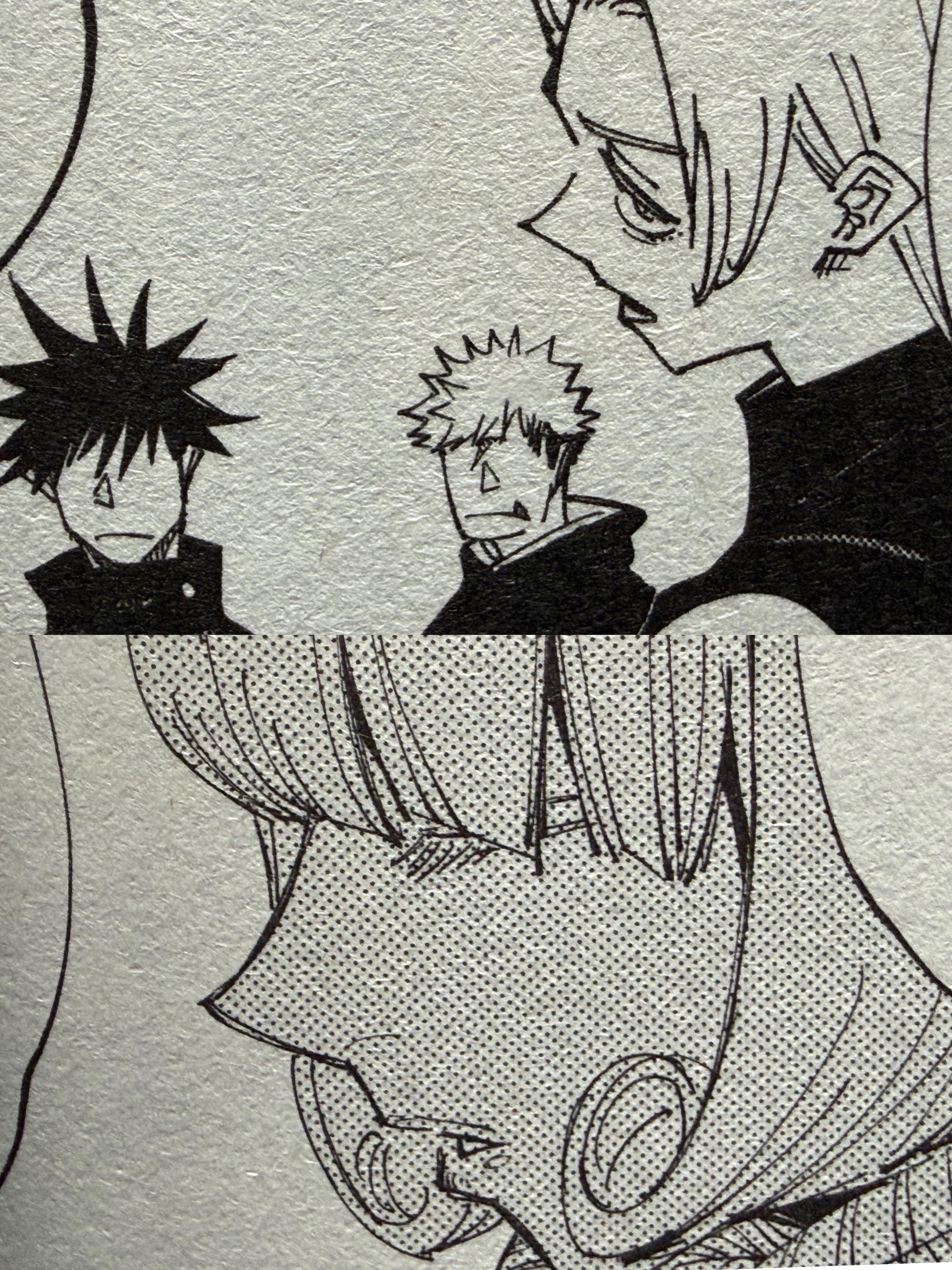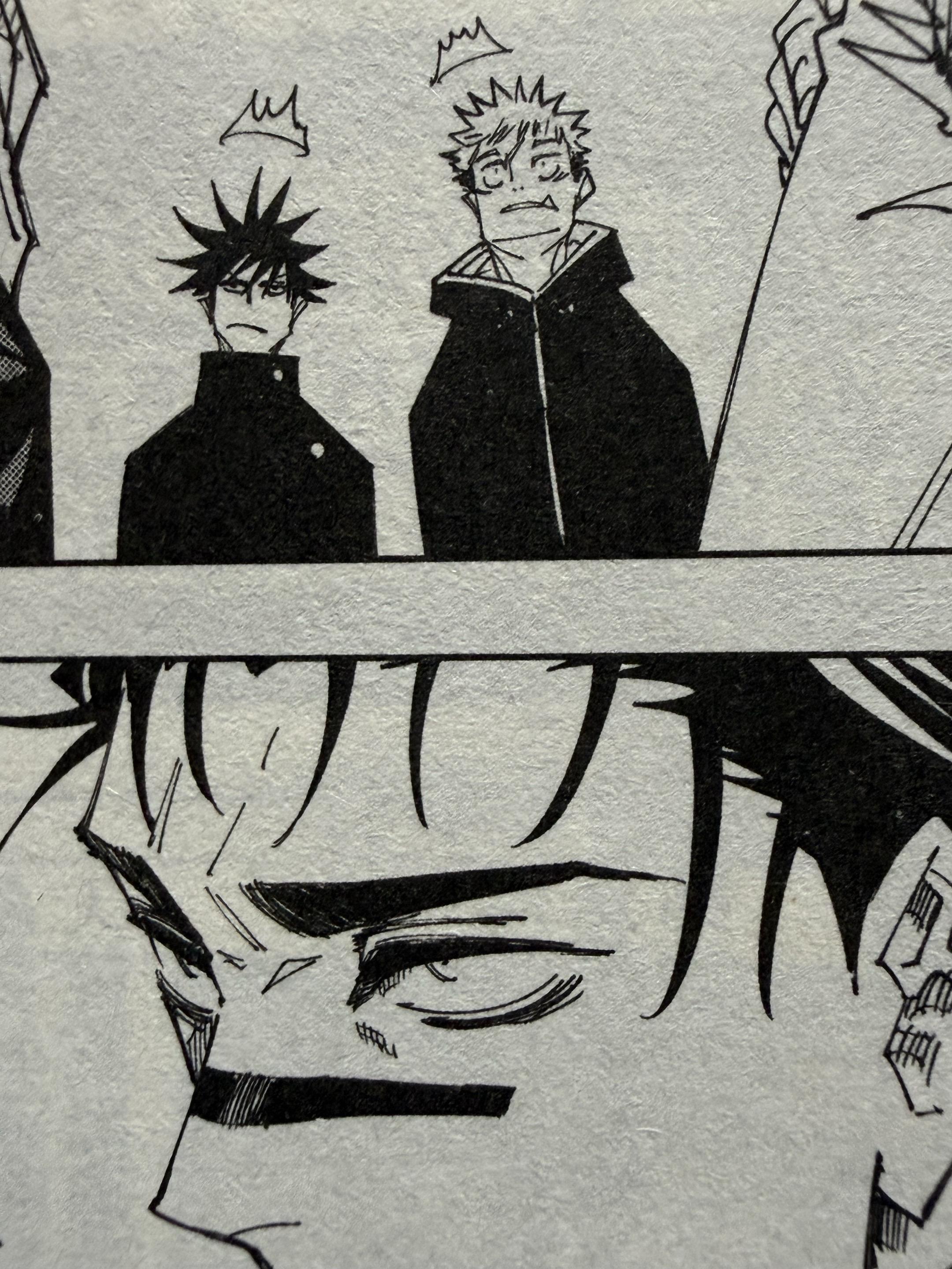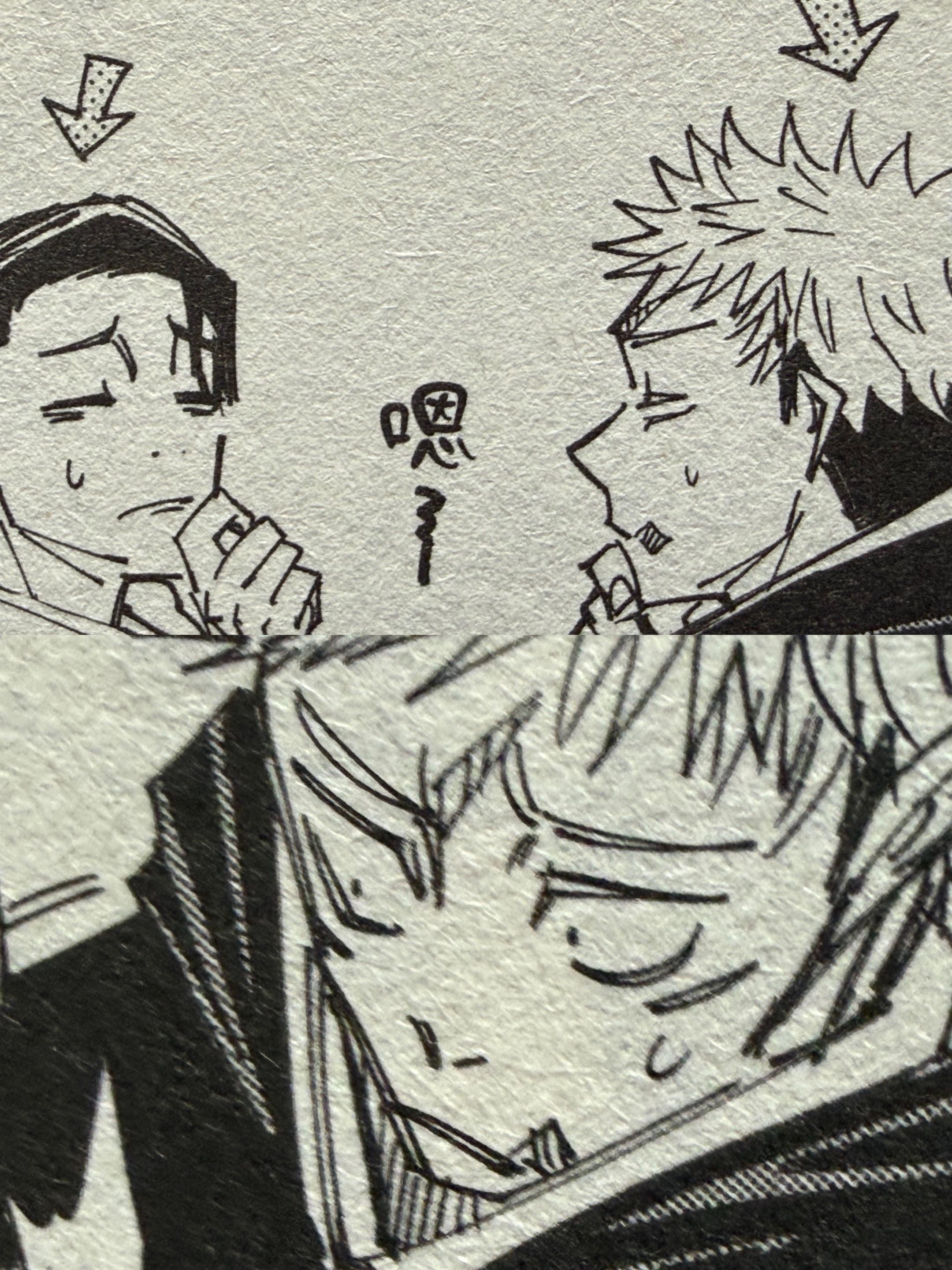 《咒术回战》漫画17页对白处理方式。如何把对白处理的有趣对于漫画而言也非常的难,独眼猫选择的是角色的表情,这些表情并不是为了有趣而有趣,而是基于这些对白的创作,漫画中对白的处理方式还有其他的方法,例如《孤高之人》中的喻像化,《无限住人》中的镜头和光影变化……需要了解的是多页对白的难度并不亚于打斗漫画漫画家绘画笔记