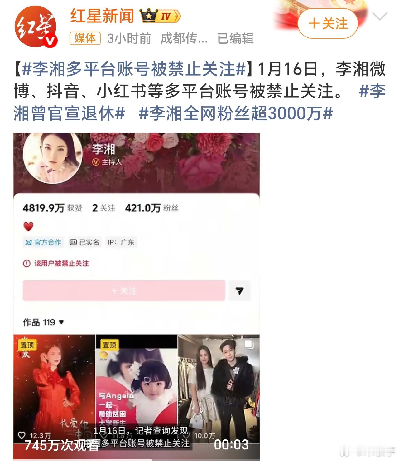 李湘全平台账号被禁止关注李湘全平台被禁止关注?大家说是哪方面原因?