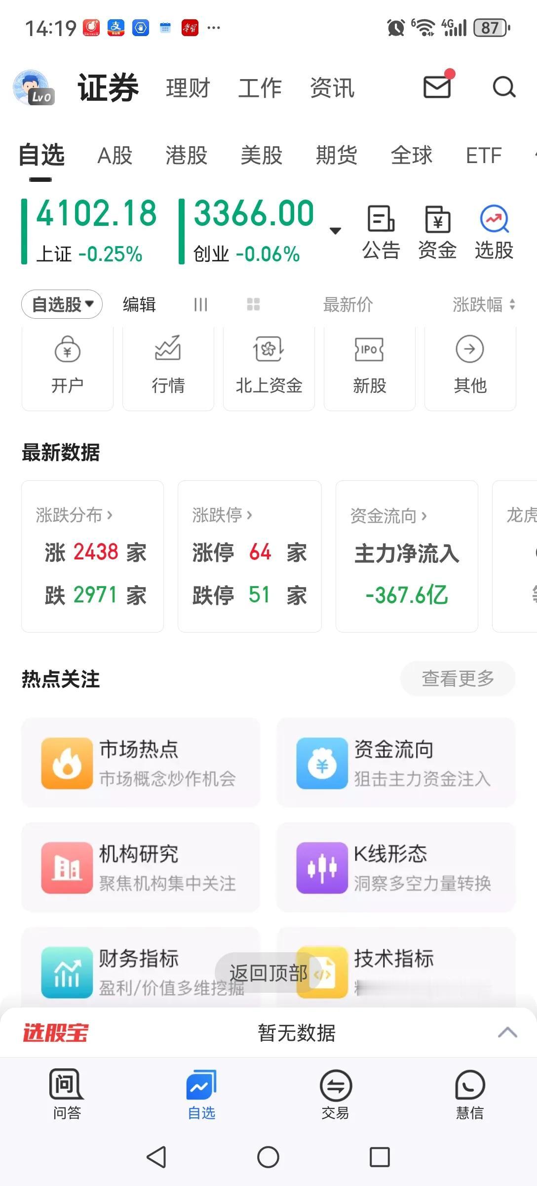天量天价再现。本周三成交量近四万亿是历史天量,正应了那句天量天价的说法。虽然后期走势还不明朗,但短期见顶迹象明显。从盘中看蓝筹股在持续下跌出货,题材股也在放量出货,每天50多家跌停就是明证。短线还是要注意风险,中线如何还是要看各方力量共同作用的结果再研判。