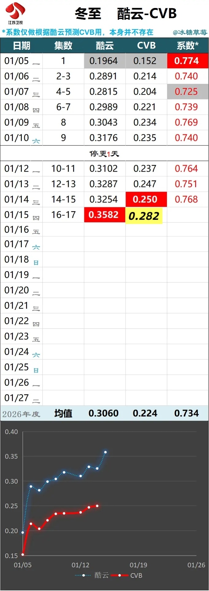 1月15日的cvb也更新了,在我压根不在意的角落里,黄景瑜那部网播都收官一年多的现偶《冬至》,cvb越播越高了,你说说,这上哪儿说理去!沉默的市场就爱用遥控器和播放量表达喜好啊!黄景瑜冬至