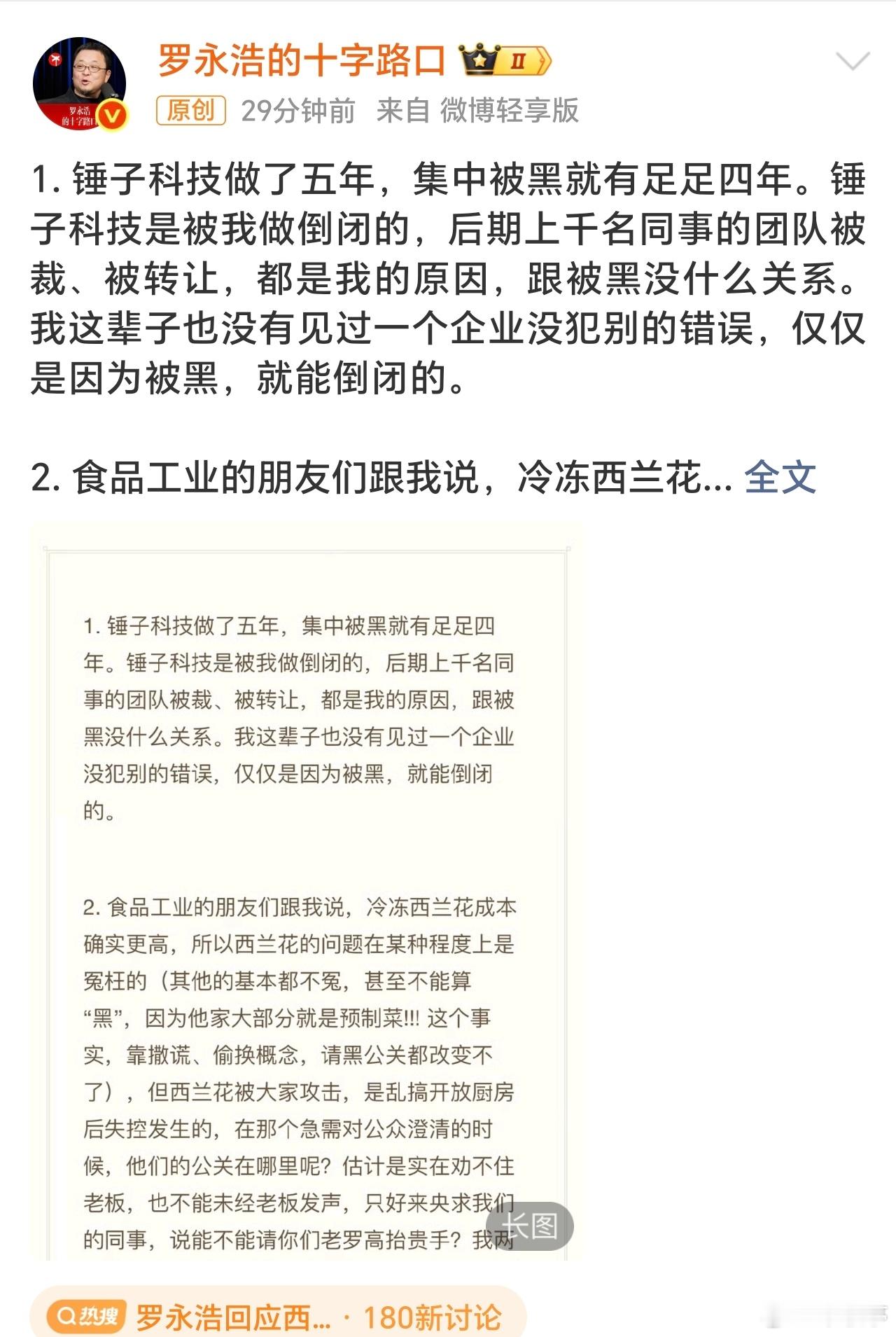 罗永浩再发长文回应贾国龙关于西贝裁员事件,这两天讨论的很热闹!罗永浩再发长文进行