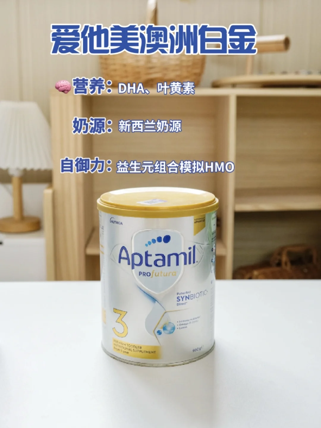 ✅爱他美澳洲白金:有DHA、叶酸、叶黄素、铁、维生素B12等基础成分,帮助宝宝成长