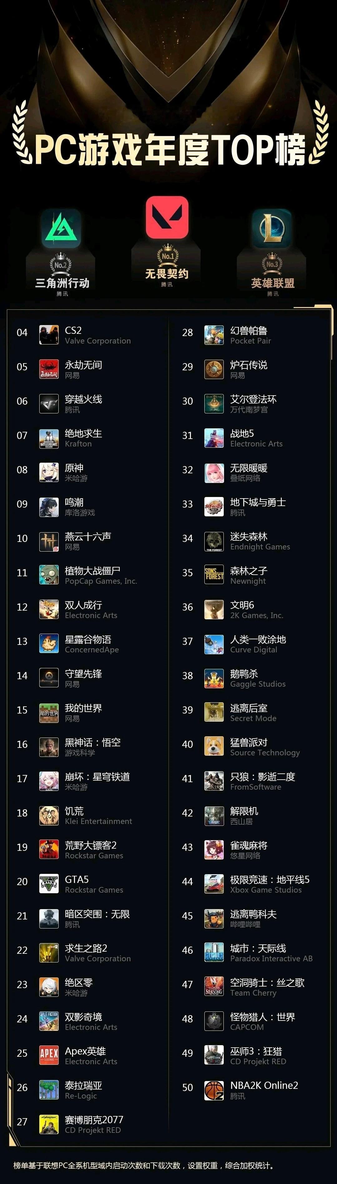 年轻人真的不玩英雄联盟了?联想发布PC游戏年度TOP榜,LOL跌至第三名这个榜单只计入联想电脑,单联想在国内游戏本市场份额第一,还是有参考意义的。游戏本用户多是在校大学生,看来玩LOL的年轻人越来越少了曝Doinb左梓轩成队友lol英雄联盟