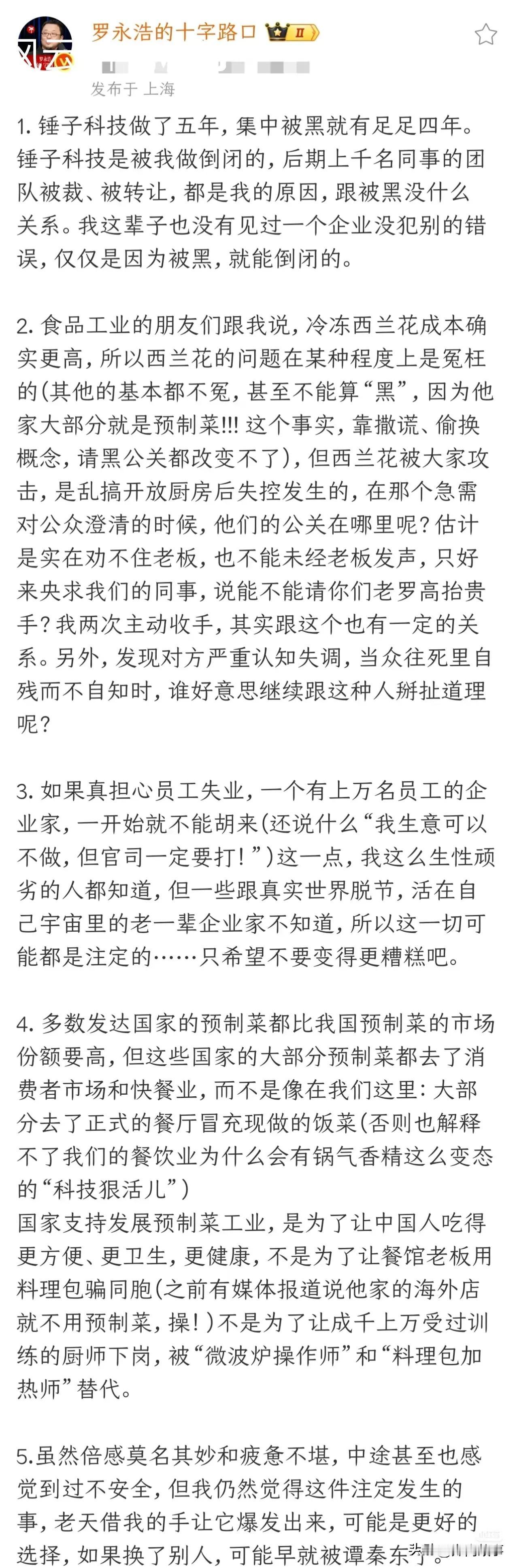 贾国龙亲自点名要求罗永浩对线 老罗一分钟都没犹豫直接回复 老罗做企业虽然失败了 但老罗对产品尤其是科技产品的研究和执着我还是佩服的 我家里至今还有四部锤子手机 老罗当年离开锤科 我还难受了一段时间 以至于后来坚果pro3发布会出现致敬罗永浩视频时我立即下单买了 这个手机我现在还在用非常好 一点不卡顿 老罗做企业没成功 但是做产品没坑过消费者一次 这一点他比贾国龙强 做得好就坚持 没做好就认 企业家能坚持这个理念的 消费者不会让他穷的 看到他的回复还在用锤子便签 我相信很多锤友都明白那份感情 锤友们等他他会来好久了