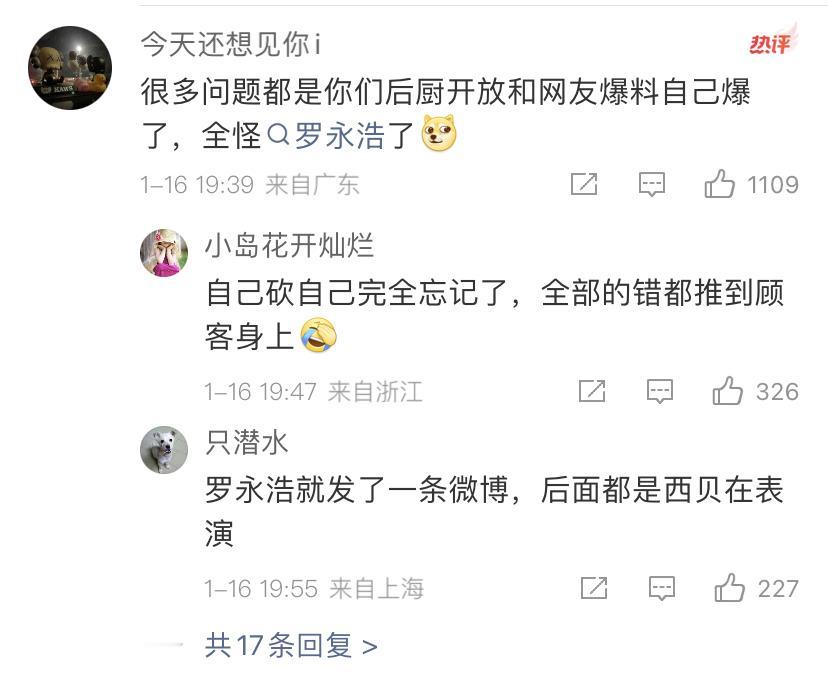 罗永浩:估计是华与华之后,又被什么山寨公关公司忽悠了,突然有点心酸……我能忍尽量忍吧,唉。 贾国龙:千万别忍,忍不是你性格,也不是我性格。你也别一提自己错的就忍,后面还有很多。 网友们的留言也非常的有意思,其实这个事情最开始是一件特别特别小的事情,如果不回应的话,几乎没有任何人的关注。 回应的时候反而引发了人们的关注,后来西贝方面错误的公关,更是堪称灾难。特别是邀请全国的媒体探访后厨,那时候大家才知道,西贝里面很多菜并不是在现场进行加工的。 大家是怎么看的?欢迎评论区留言。