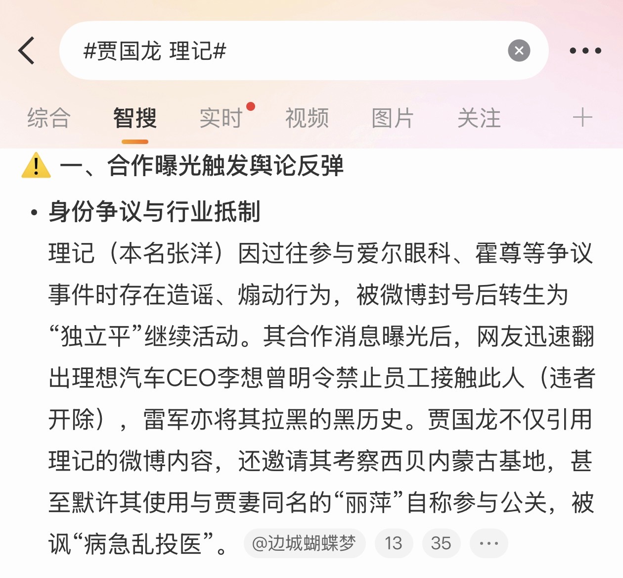 贾国龙 理记 微博现在智搜挺好用的,吃瓜吃的很明白。
