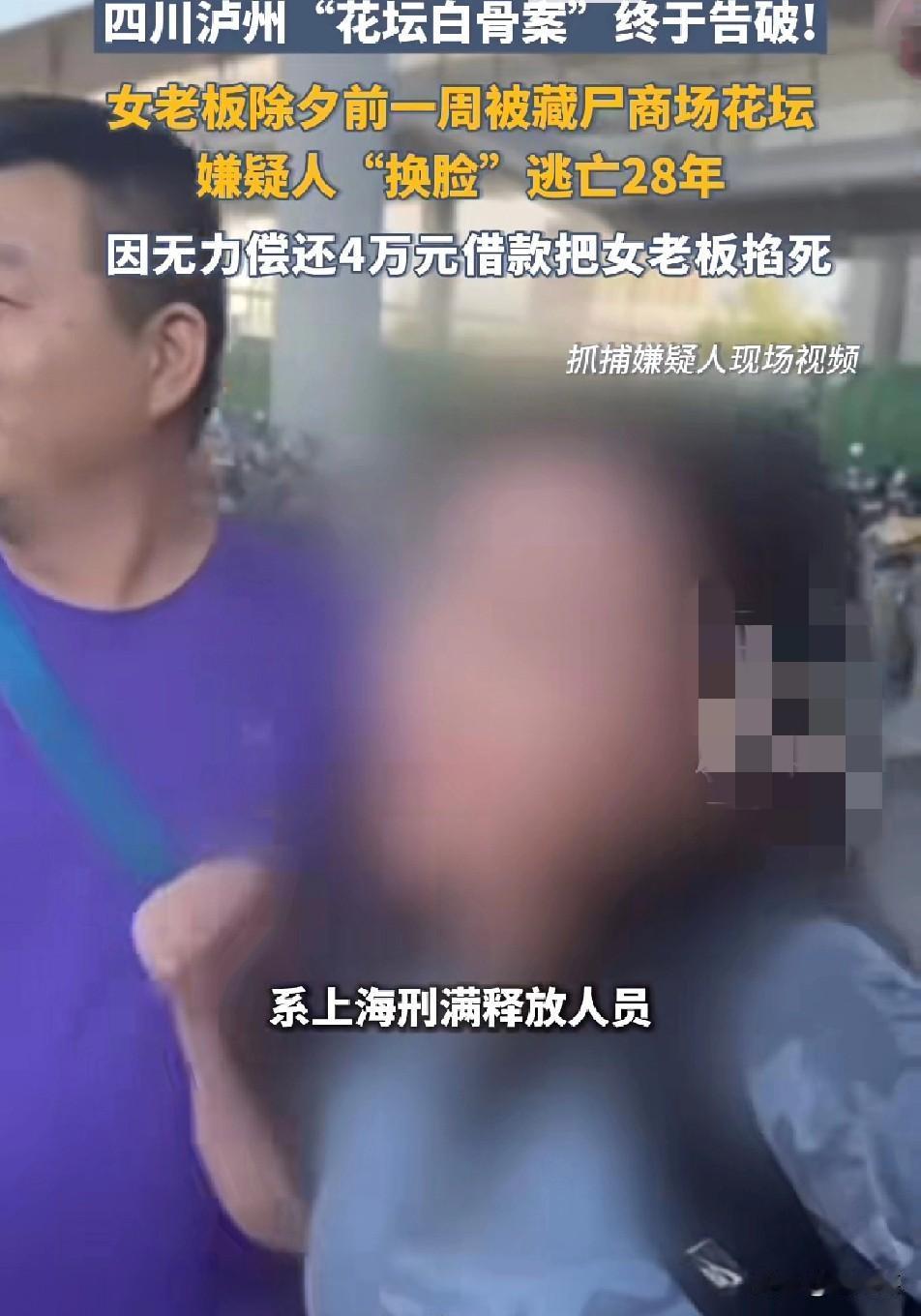 28年追凶! 四川泸州警方 近日破获一起尘封28年的命案:1997年除夕前一周 泸州公交商场女老板吴某萍因向另一服装老板陈某芬追讨4万元借款 被陈某芬的丈夫陈某宇掐死,尸体被藏尸于商场顶楼花坛 凶手还抢走了死者的金银首饰 案发后,陈某宇“换脸”逃亡,利用身份证重号漏洞洗白身份 在上海隐姓埋名甚至成为刑满释放人员 直到2025年,警方通过技术手段锁定其身份,将其抓获,案件终于告破 正义或许会迟到,但永远不会缺席!