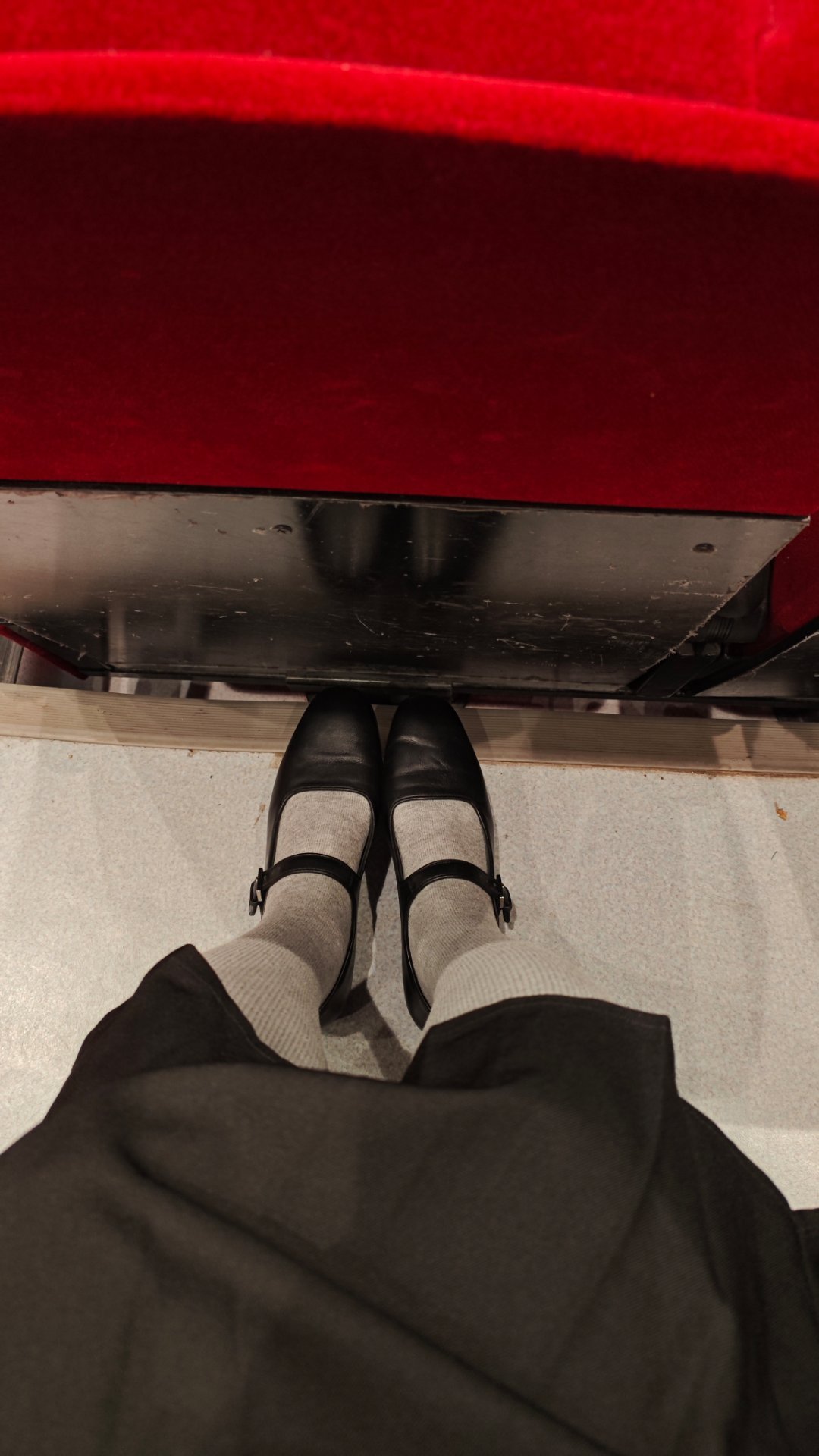 昨天去资料馆看了大卫林奇的妖夜慌踪,一个被出轨的丈夫的血腥复仇的故事,又暴力又色情还很晦涩,看完头晕晕的。穿得黑色毛衣,黑长裙,灰裤袜,新买的芭蕾舞小鞋子,外面套的冲锋衣。忽然好喜欢这种风格,一口气买了两双这种风格的小鞋子,下次出门穿~ 北京·中国电影资料馆艺术影院