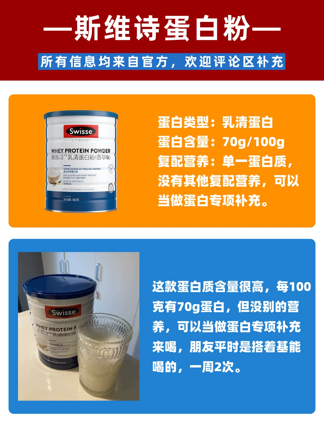 ②斯维诗:香草口味的,蛋白含量很高,70/100g,但就这一样没别的营养,可以当做蛋白专项补充来喝,朋友搭着基能喝的,一周2次。