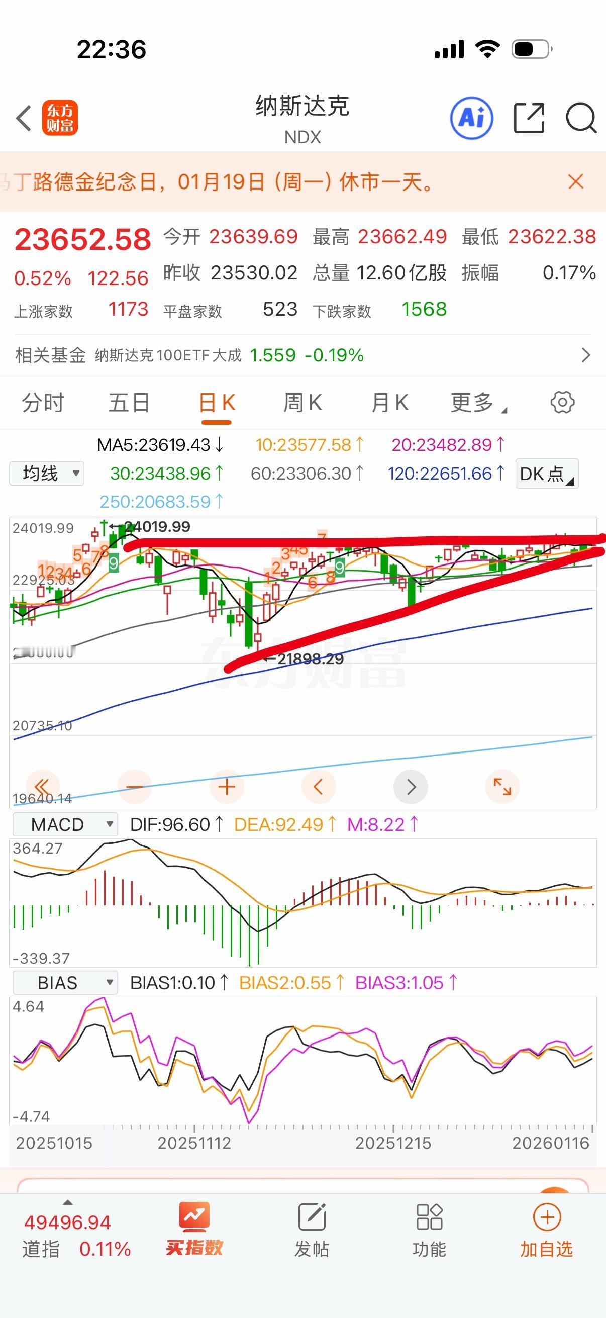 纳指白天都来劲的很,晚上开盘就蔫了。