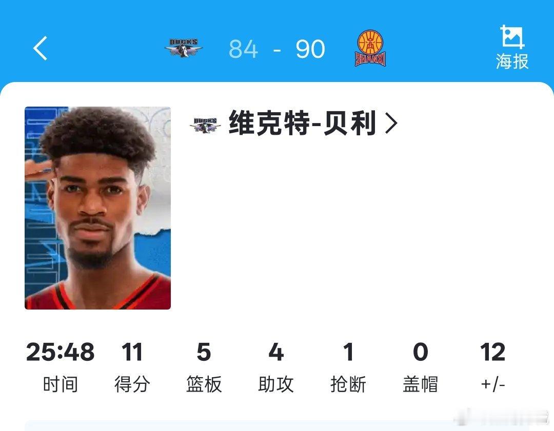 有一说一,如果今天许导多用贝利打打,结果还真难说,看完回放,我觉得还是上的时间少了点。山西男篮战胜北京男篮cba