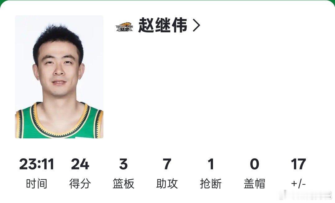 赵继伟赛季首秀发挥出色,个人出战23分钟得到24分3篮板7助攻,正负值正17。率队战胜新疆伊力特。辽宁男篮vs新疆男篮cba辽宁男篮战胜新疆男篮