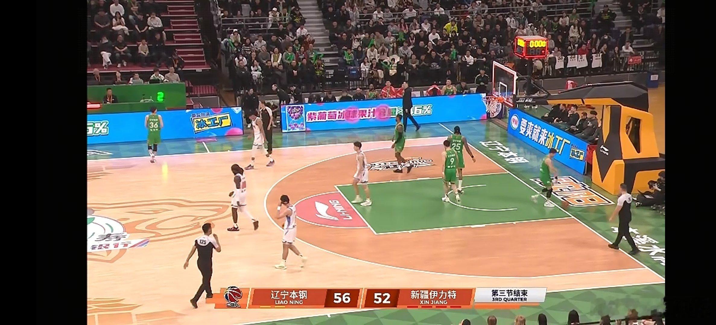第三节结束,56-52 辽宁本钢主场领先四分。cba辽宁男篮vs新疆男篮