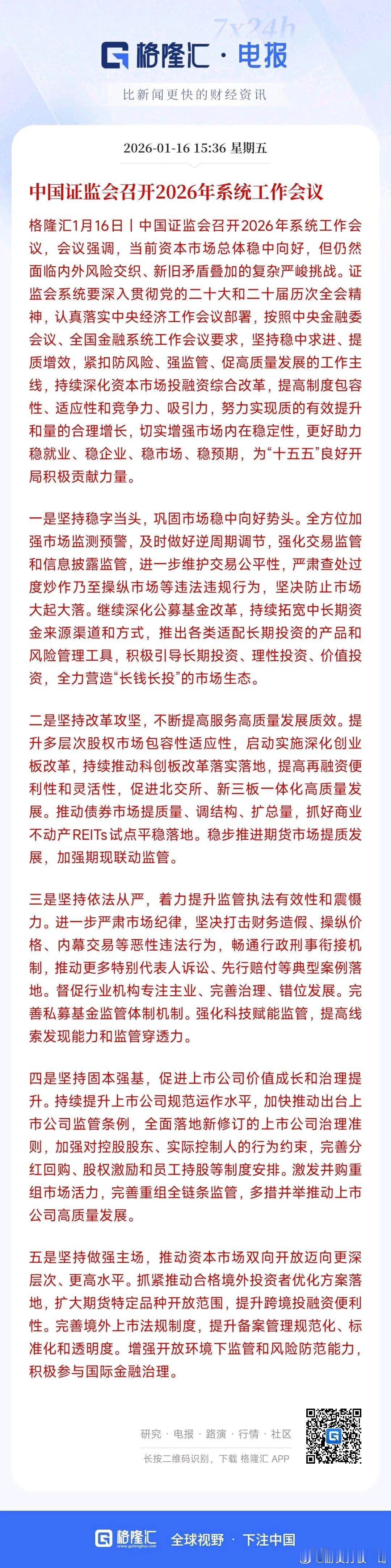 证监会会议召开,2026年A股的基调已经定了证监会这次会议给2026年定调了,主要有以下方面:稳市场,推改革,严监管,提质量,扩开放。基本上2026年还是慢牛的走势,不会让出现疯牛,就像现在一样,指数起来就要降温。而且改革创业板和科创板,推动长线资金入市。A股现在已经正式的走上了牛市的行情,4000点以上A股已经冲破了2.5亿的成交量,4100点都已经突破了3万亿的成交量。市场是火热的,但是现在村里主动降温,就是为了抑制疯牛。2026年还是很有期待的,就是现在不知道哪个八板块引领慢牛走势。