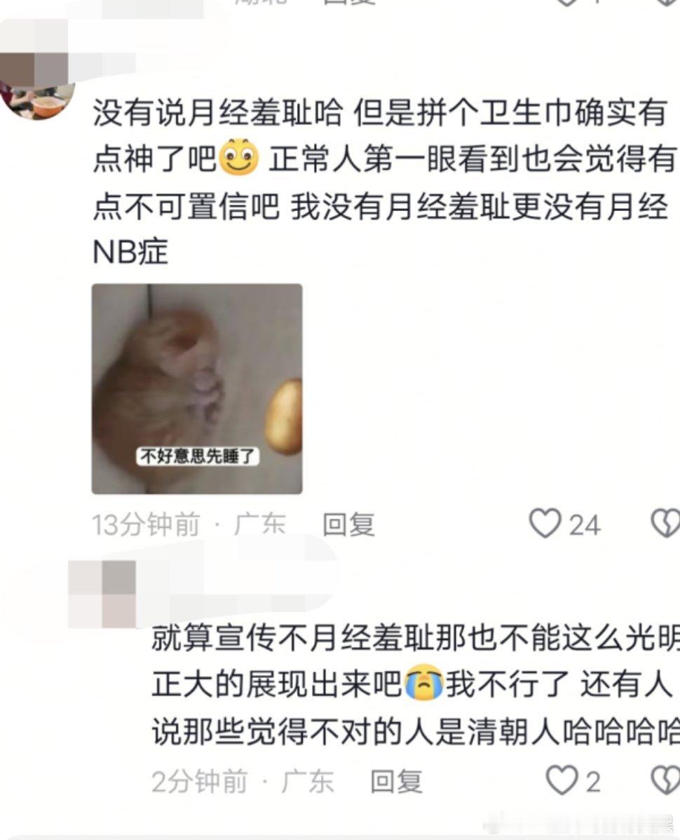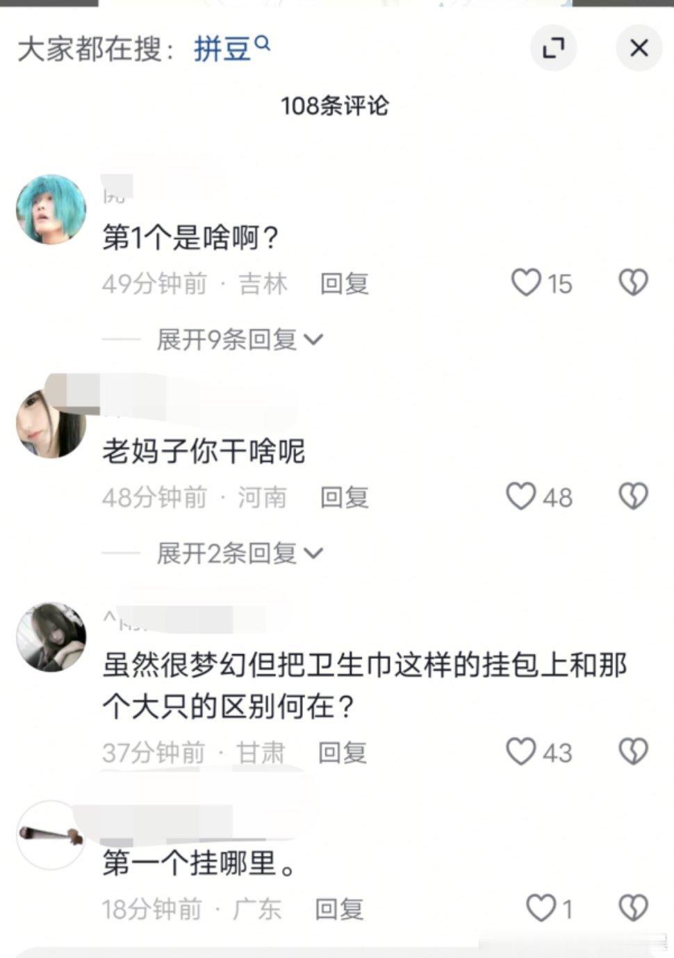 拼豆视频 原视频图一是拼的卫生巾 很多人应激 卫生巾威力堪比核导弹吧 这些图只是其中一部分评论 还有好多骂的没截 而格调拼豆却没人骂 抖人很爱双标哦