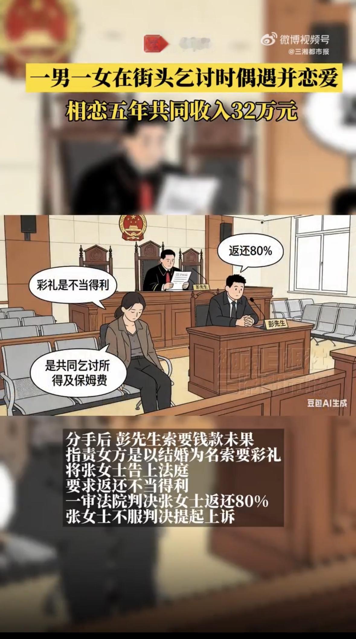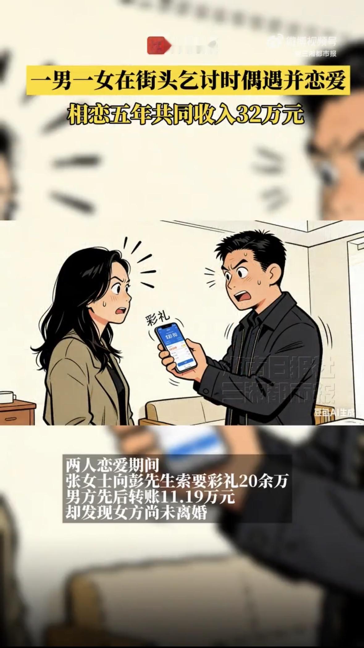 2020年,贵州的彭大哥和宁夏的张大姐,在西宁街头乞讨时认识了。同是天涯沦落人,俩人很快走到一起,以夫妻名义过日子。彭大哥离了婚,张大姐也说自己是单身。感情热络时,张大姐开口要20多万彩礼,彭大哥东拼西凑,陆陆续续转了11万多过去。 可到了2024年,感情崩了,更狗血的事也被捅破了——张大姐压根没离婚,丈夫还好端端地在着呢!彭大哥感觉被耍了,一纸诉状告上法庭,要求还钱。 法庭上,张大姐辩称那不是彩礼,是两人五年一起乞讨32万收入的“分成”,还有自己的“保姆费”。可法院认定,彭大哥转账就是为了结婚,她没离婚却以单身名义索要彩礼,这钱就该退。一审判她返还80%,二审维持原判。 说实话,两人在最落魄时相遇,本该多点真诚,少点算计。日子再难,感情也不该是赚钱的工具。靠欺骗得来的钱,终究是一场空。
