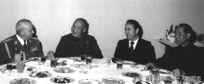 1974年,李达(左二)宴请南斯拉夫军队副总参谋长约克索维奇(左一),左四为国防部外事局局长柴成文。