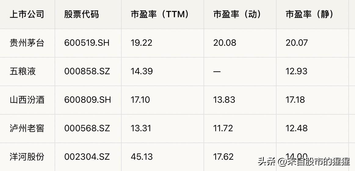 上午9:34,周五白酒板块再创调整新低,关于白酒板块,我来说两句 周五白酒板块跌0.74%,再创近期调整新低点。从白酒板块年线来看,白酒板块连续调整了4年。从白酒板块的市净率来看,有一些白酒个股市净率已经跌到2以内,而白酒板块普遍的市净率都是3倍,4倍,6倍的样子。并且,截止本周星期五收盘来看,白酒板块整体的市盈率也是非常低的——大家请看表2。 从市盈率和市净率两个数据表明,个人认为,白酒板块经过超长周期的调整之后,目前已经跌到了非常明确的价值区间。 从技术面来看,白酒板块,近期周线图完成了非常清晰的周线级别五浪调整结构。五浪调整是一个非常充分的调整浪,五浪调整结束之后,白酒板块有望展开反弹波段——请看图3。 个人观点,仅供参考,不代表任何投资建议!
