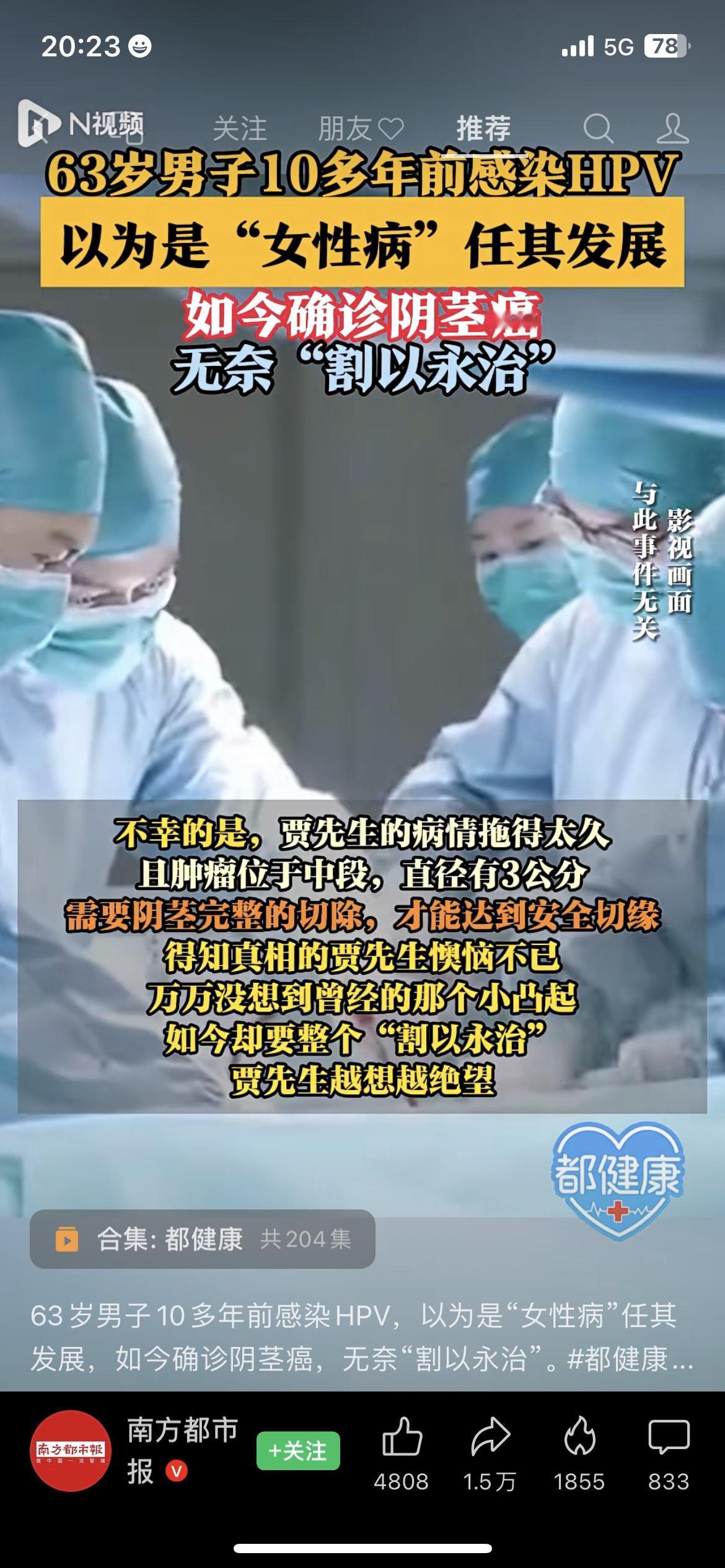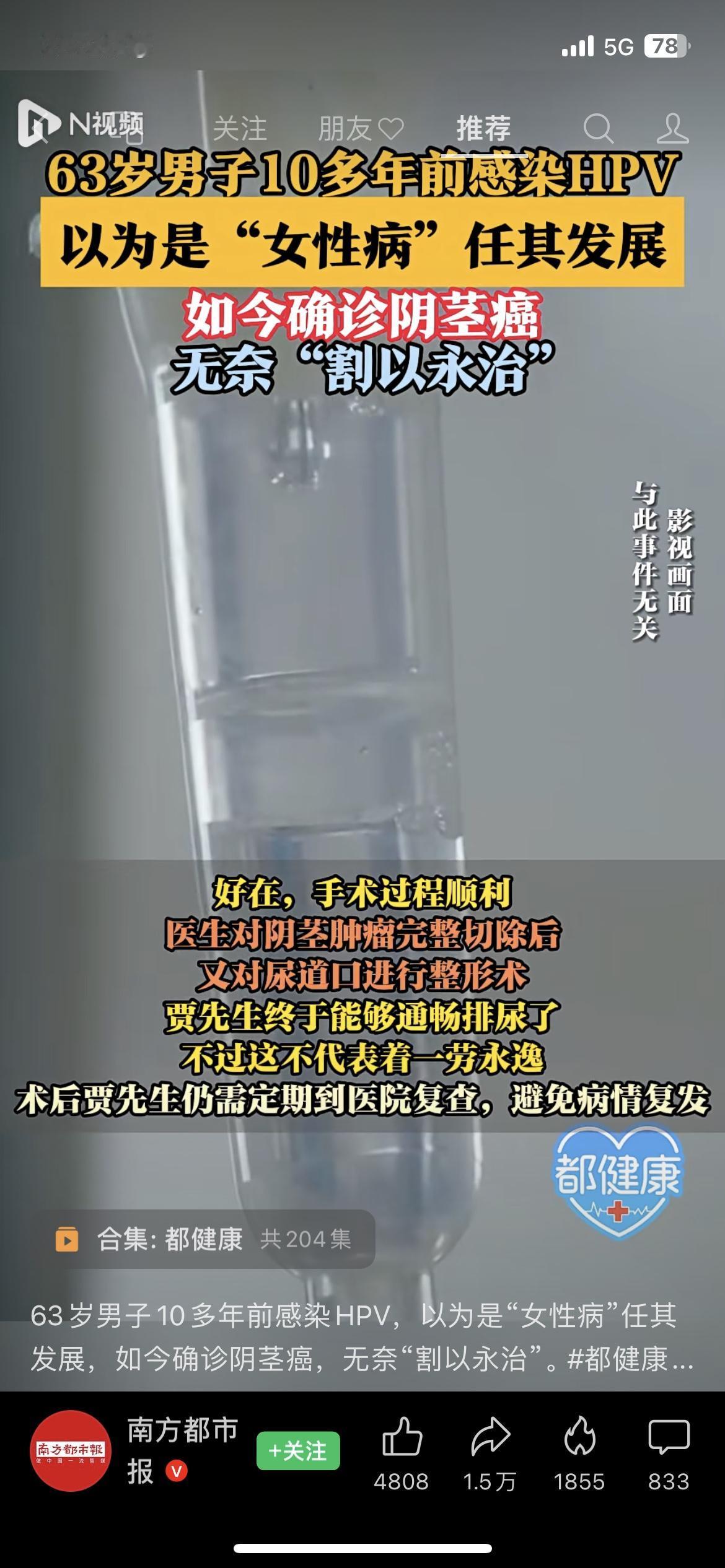别再以为HPV是“女性病”了!63岁大叔感染HPV十多年没管,最后确诊阴茎癌只能手术切除。医生说50%的阴茎癌都和HPV有关,男性也得防!你身边有人忽视HPV筛查吗?HPV男性也会感染