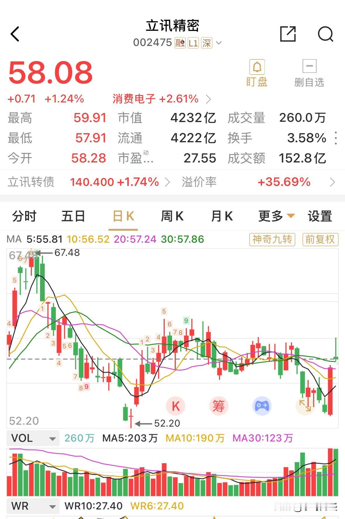 对于一家4200亿元的市值的上市公司来说,10-20亿元规模的回购看似挺多的,但也仅占总市值0.2%-0.4%之间,比例太小,显得过于苍白。 但也仅是这种程度的回购(用于员工激励),市场还是给予了正向反馈,止住了个股近期的下跌趋势,周涨幅4.37%,月涨2.4%。 作为消费电子的代工企业代表,立汛精密近年来保持超20%的复合增长率,四年净利润近乎翻倍。 乐呀财经