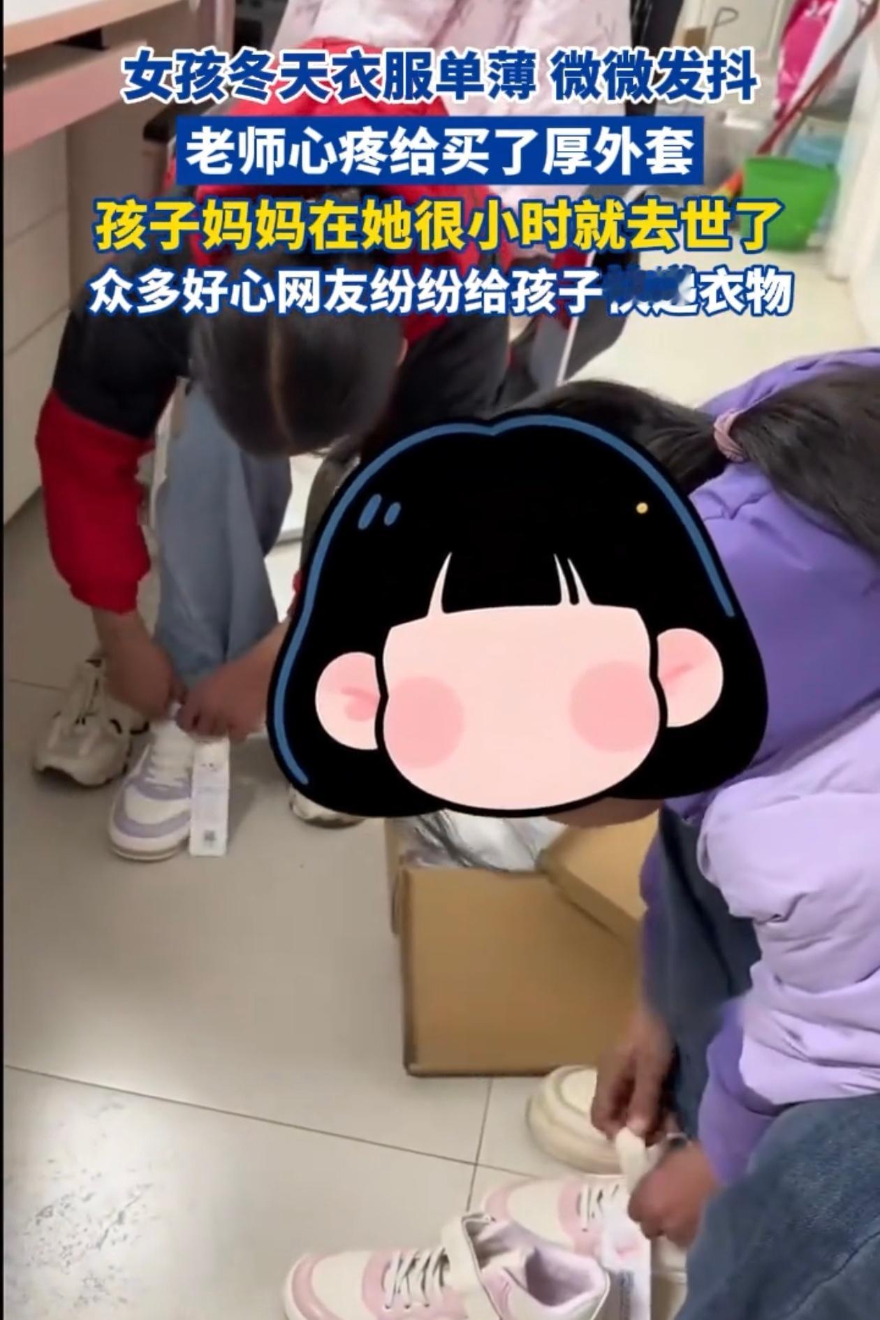 云南的一所小学里,四年级的女孩的母亲去世了,没有人在照顾她,大雪天她穿着单薄的衣服来上学,在食堂吃饭的时候冻得直打哆嗦,这一幕被英语老师看到之后,跨越千里的温暖接力就悄悄开始了。 女孩的情况在农村并不算稀奇,家里没有了母亲,父亲常年在外打工,留下孩子跟着年迈的爷爷奶奶生活,老人自己都照顾不好,哪里还会顾及孩子的衣服穿得暖不暖。 那天外面下着雪,老师在食堂打饭的时候看到了角落里有一个小姑娘,身上只穿了一件薄外套,小手冻得通红,扒拉着饭碗的时候整个人都在轻轻发抖。老师说,当时心里很揪着,饭也吃不下去了。 她当天就跑到镇上给孩子买了一件厚棉衣,给女孩穿上的时候,小姑娘没说话,只是低着头,眼眶红红的。老师后来把这件事发到网上,没想别的,就是希望更多的人都能看到这些孩子。 结果评论区一下子就炸了,天南海北的网友开始给学校寄东西,棉衣、棉鞋、围巾手套,还有人直接说要资助女孩读书,一直供到她大学毕业。一箱一箱地给学校送快递,老师接了太多快递都快撑不住了,办公室快要放不下了。 老师后来和网友商量,物资太多了,能不能把一部分分给学校里其他有困难的孩子?几乎所有人都表示赞同,有人留言道:“本来就是想帮助孩子们的,多一个少一个都好。” 于是更多的孩子穿上了棉衣棉鞋,几个平时穿得单薄的学生,在那段时间里都裹得暖暖的。 其实这件事说出来也很简单,就是老师多看了眼,把看到的说出来了。就因为这一眼,一个孩子冬天不再觉得冷了,屏幕后面无数个陌生人也找到了一个表达善意的地方。 没有人是英雄,老师只是做了她认为应该做的,网友也仅仅是帮忙而已。但是这些再普通不过的行为凑在一起就成了一件很了不起的事情,使那些容易被忽视的孩子被看见了。