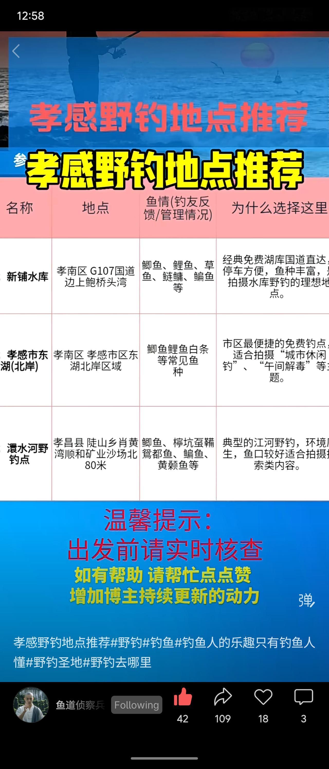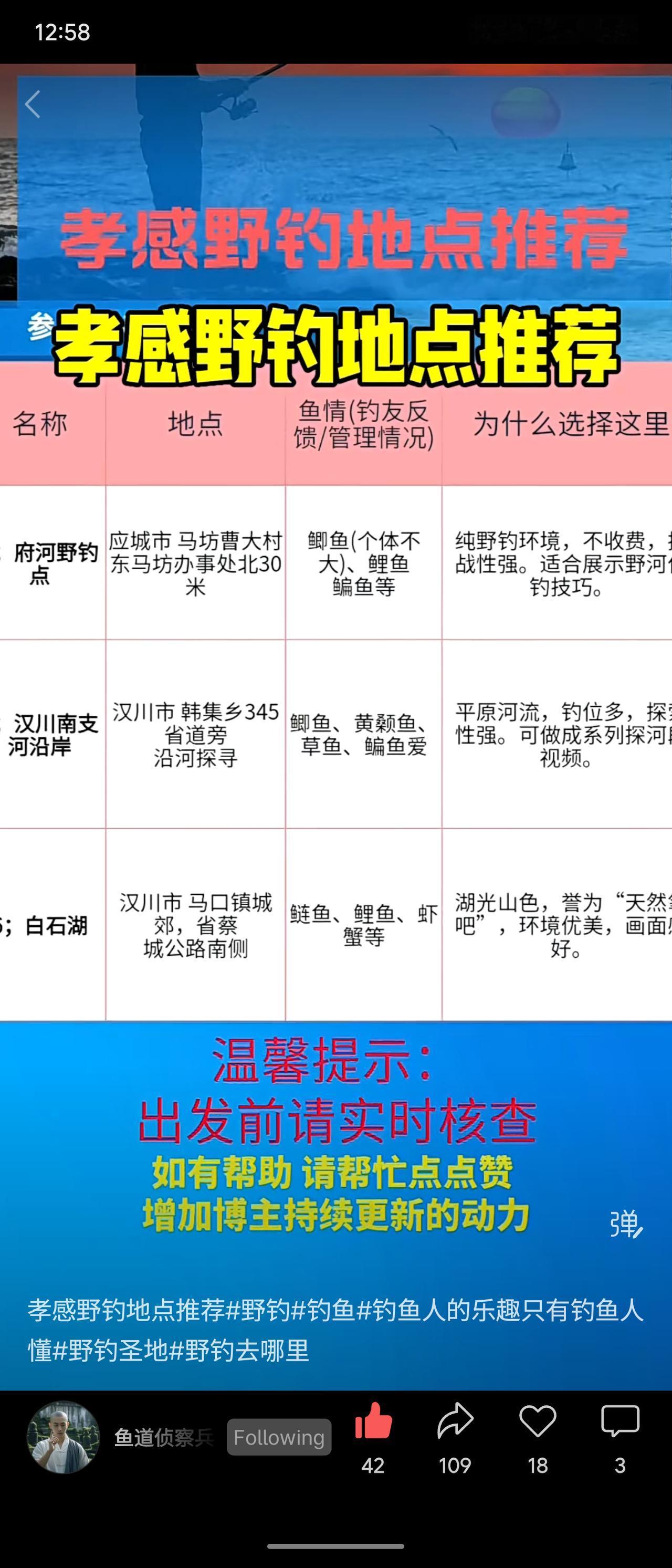 孝感网友“鱼道侦察兵”总结的几个野钓地点,并做钓情分析,特转发分享给本地头条钓友。