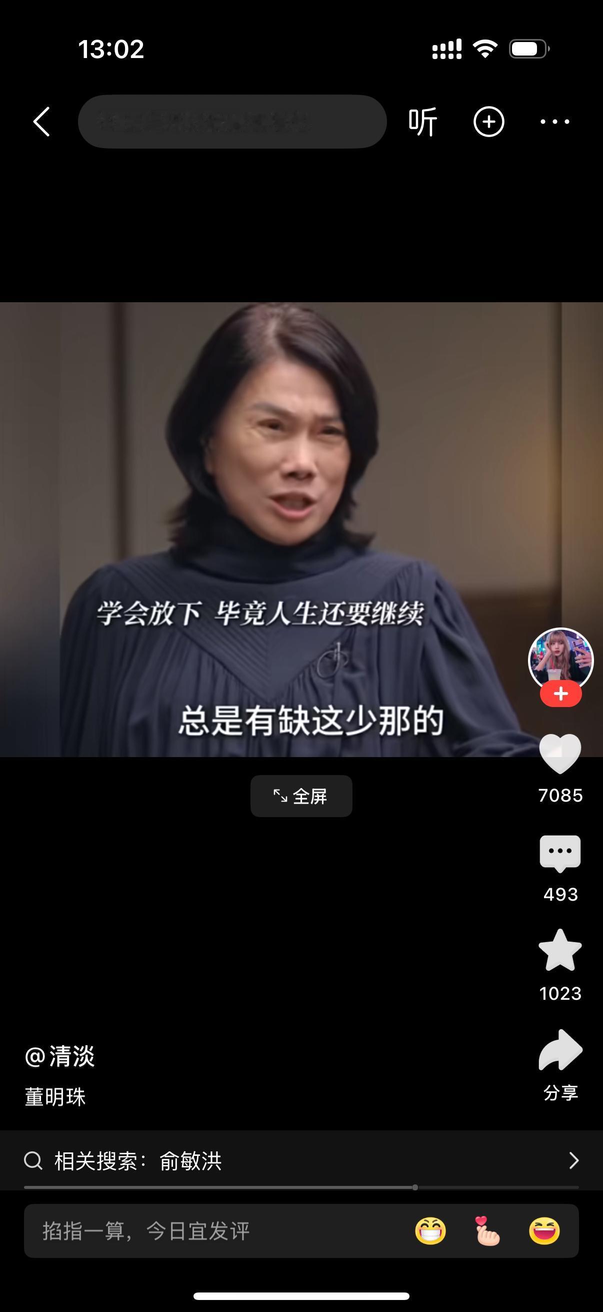 俞敏洪采访董明珠,你觉得你会有遗憾吗?董大姐反过来问,俞老师,你觉得你会有遗憾吗?俞敏洪像个小弟一样说,会有的。董大姐说,每个人都会有遗憾。只是遗憾的东西不同。你把这种遗憾当成一种痛苦,那就得不偿失了。人生历练过来,总有缺这少那的。那为什么不能放下呢?何必给自己背上一个包袱。俞老师附和着,非常有道理。在董面前,俞就是个小弟的感觉。