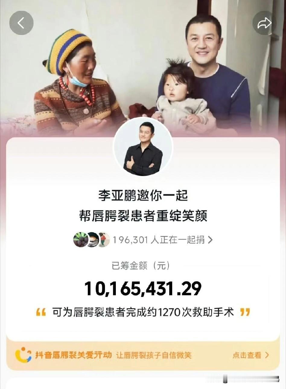 君子论迹不论心,虽然李亚鹏做生意不怎么样,但他是真心实意在做慈善,要知道嫣然天使儿童医院前前后后已经完成唇腭裂手术超过11000例。这得帮助多少唇腭裂孩子重新找回自信,网友能自大捐款1000多万就是对他最大的肯定,也希望他能借助自己口碑的反转重新走回正轨。