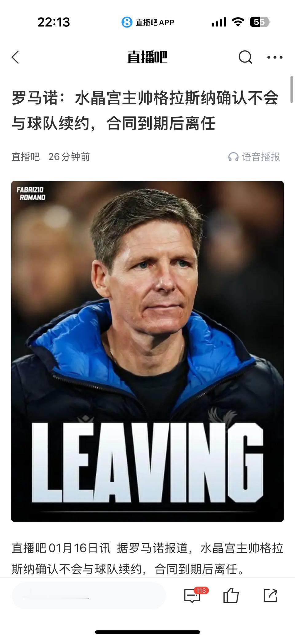 水晶宫教练格拉斯纳去处很值得关注。 因为他不续约,就是想去豪门球队。 利物浦,他和利物浦球迷关系紧张,格伊就是被他破坏的,利物浦更喜欢阿隆索, 切尔西,这个有可能。 曼联,这个也有可能, 皇马,如果克洛普不接受,他会是替补人选。 所以格拉斯纳会是豪门教练!![大金牙]