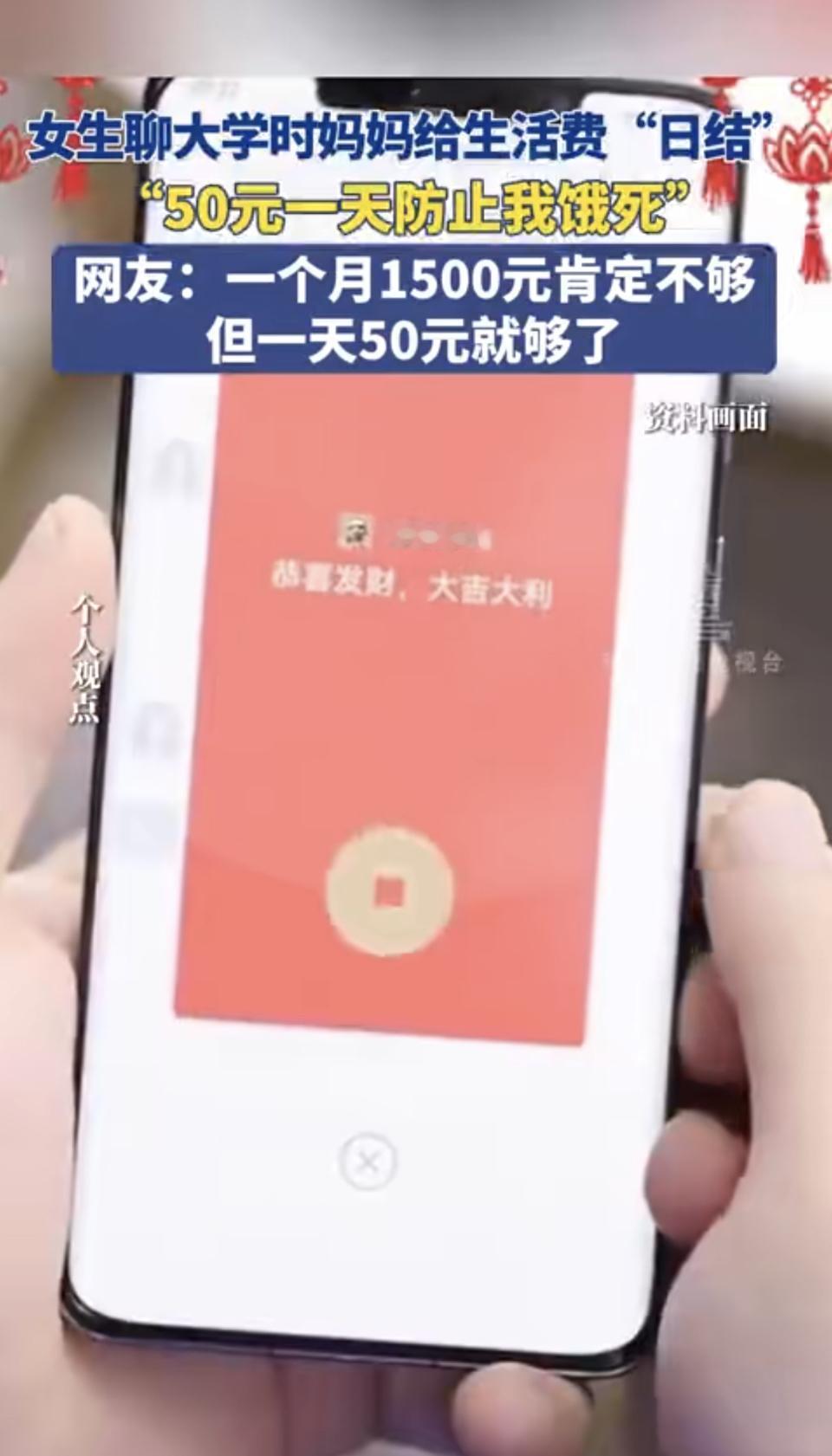 湖北有个女博主分享自己大一生活费日结,一天50块,她妈妈觉得这样能保证孩子不饿死,还知道孩子起床时间。这事引发了热议。有人觉得这能增进亲子沟通,让孩子每天和家长有联系。但也有人认为,这种方式容易让亲子关系变成“交易式”。 每天汇报行程和花费,看似是陪伴,实则可能让沟通变得任务化。而且50块一天,在大学能买的东西有限,要是遇到突发情况,这点钱根本不够。家长关心孩子是好事,但也要给孩子一定的自主空间,让孩子学会独立支配金钱,而不是把亲子联系和金钱捆绑在一起。 大学生活费 子女生活费 2000生活费 生活费300 女孩生活费 生活费成本 生活费200