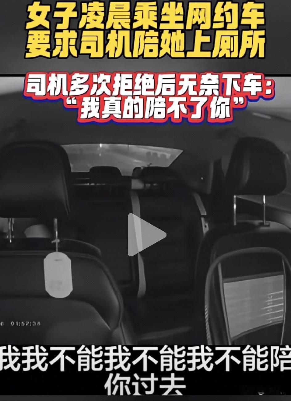 凌晨网约车,女乘客内急要司机陪上厕所!网友:一个怕鬼,一个怕锅! 1月15日凌晨时分,一个网约车司机手机上的订单正跑着,后排姑娘突然说话了,声儿都带着急:“师傅,我内急,你能不能陪我上个厕所?” 司机师傅心里一咯噔,从后视镜瞥了一眼,这黑灯瞎火、孤男寡女的,先赶紧拒绝,“我不能陪你,你上厕所我不能陪你!” 但人有三急,理解万岁。他也没多说别的话,找了个相对僻静的地方,靠边停了。顺手还从扶手箱里薅了一把纸巾,递给姑娘,算是仁至义尽。 没想到,姑娘接过纸,没下车还在继续央求司机陪她上厕所。 她看着窗外那一片黢黑,只有车灯照着前面一点路,远处跟墨泼了一样。她声音有点颤:“那你过来一下!” 师傅依旧坚持:“这不合适,你上厕所,我真陪不了你!” 姑娘是真急,也是真怕。 师傅内心那叫一个天人交战啊:去吧,深更半夜,一男一女往黑乎乎的地方钻,万一被人拍了照,或者姑娘回头反咬一口,那可是跳进黄河也洗不清,背上“变态”、“流氓”的锅,这辈子怕是摘不掉了。不去吧,看着姑娘那可怜样,万一她自己在黑暗里出点啥事,自己良心也过不去。 僵持了好一会,空气都凝固了。最后师傅一咬牙:“我只能站在车外面,不能站在你那边,你在上厕所哎!” 最终,他推开车门,坚定的杵在驾驶座门边,不再靠近一步。 这事儿传上网,可把网友乐坏了,纷纷开始“阅读理解”: “好家伙,她怕的是黑夜和未知,他怕的是社死和官司。这波是‘恐惧’的形状不同,但程度一致!” “女子:我胆小,需要人壮胆。司机:我胆更小,需要法律壮胆。” “现实版《信任博弈》,在这荒郊野岭的深夜考场里,两个陌生人都考了个不及格,但又好像都情有可原。” “要我说,这司机处理得可以了。纸巾给了,地方找了,人也下车了,保持了‘听得见呼救,看不清细节’的完美距离。这是生活给他逼出的智慧啊!” 所以你看,这到底是女子胆大还是胆小?要我说,她敢于在陌生男性面前提出如此尴尬的要求,是“胆大”;但怕黑怕独自一人,又是“胆小”。 而司机呢,断然拒绝踏入风险区是“胆小”,但最终还是选择下车守护(虽然站得老远),又何尝不是一种负责任的“胆大”? 这深夜网约车里的一出短剧,没坏人,都是小心翼翼活着的普通人。 笑过之后,是不是也觉得,有点无奈,又有点心酸? 素材来源:广州新闻电台,侵联删!